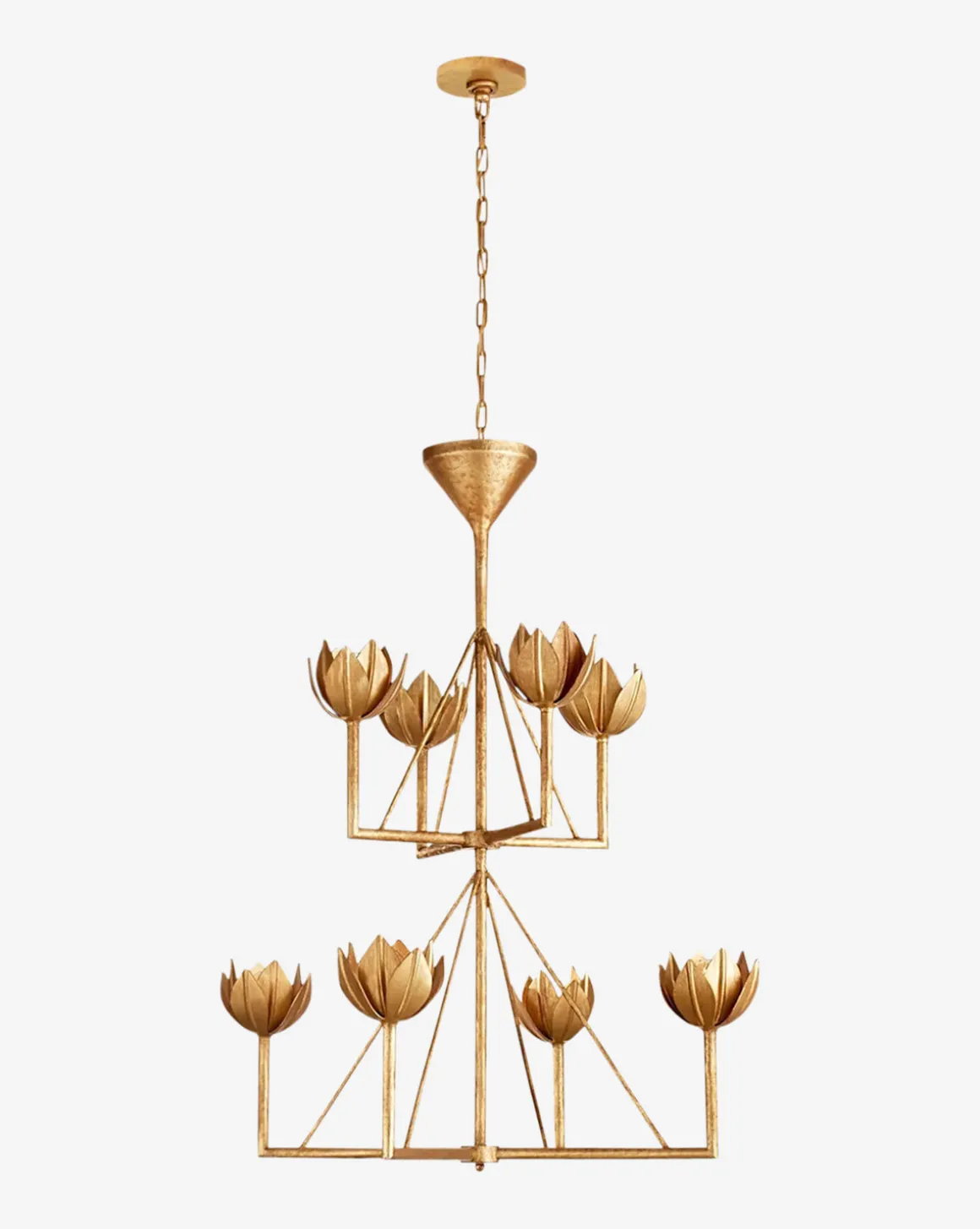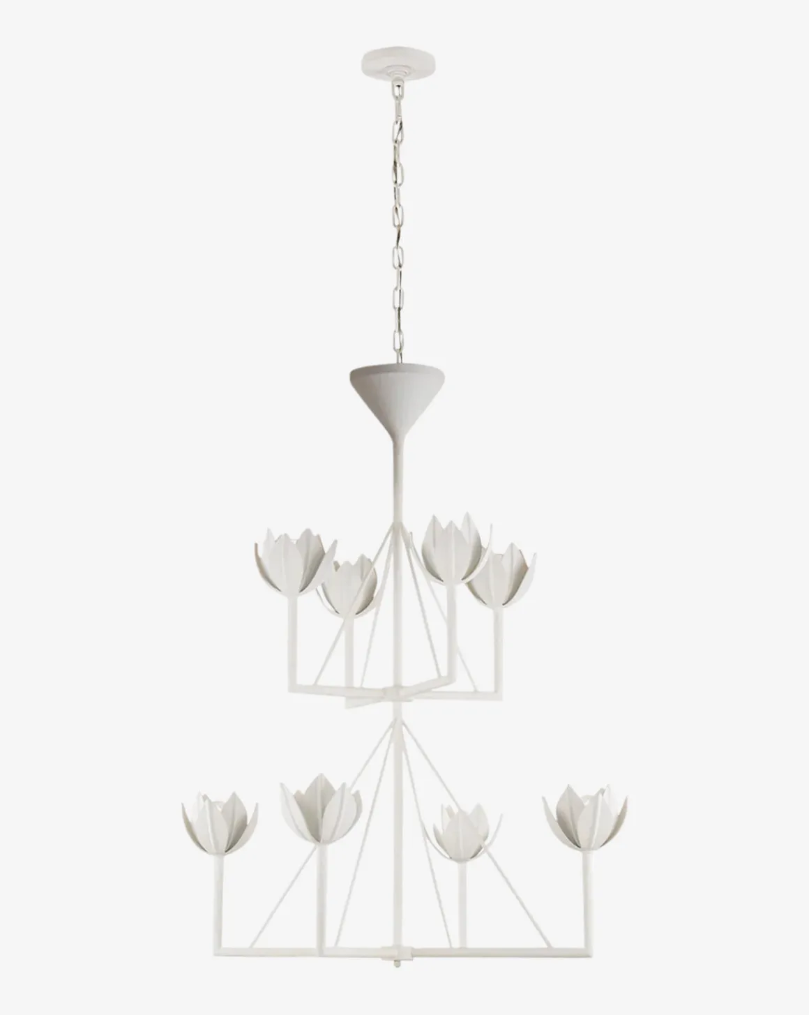 Brighten up your space with the whimsical design of the Alberto Chandelier. This double-tiered fixture shows off eight unique tulip-shaped shades, each offering an illuminating glow. Withtwo carefully curated finish options, this chandelier blends seamlessly with any home design.