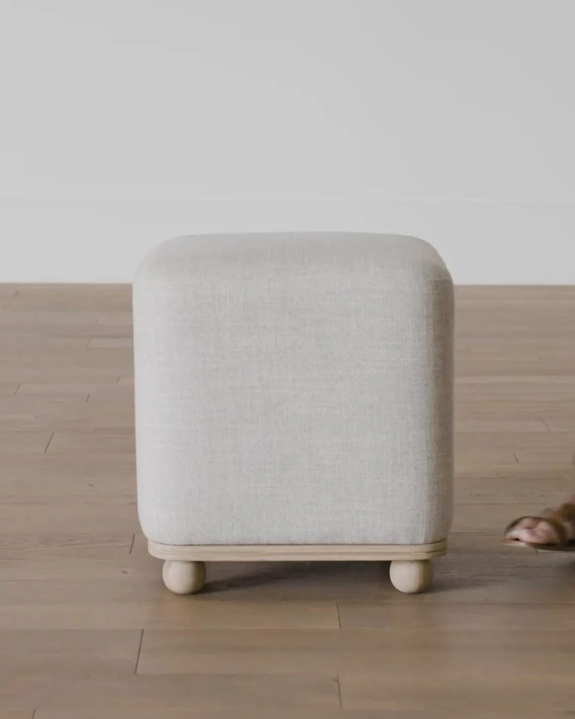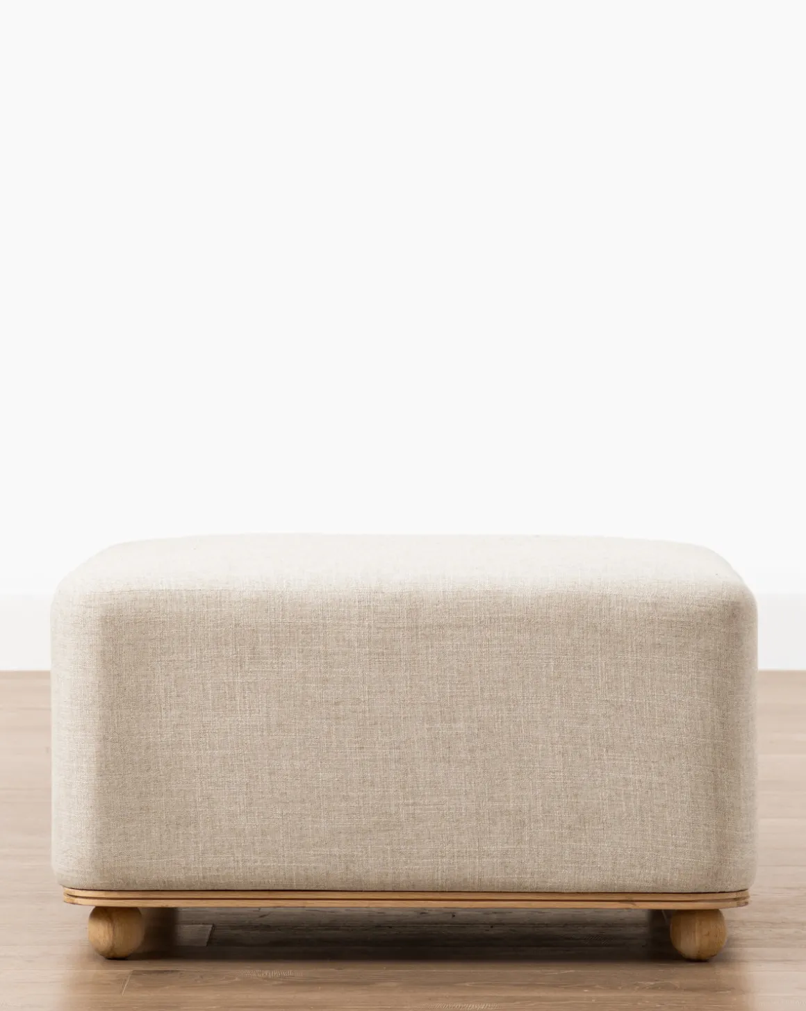 The Arie Ottoman is shapely and neutral for easy styling with your modern decor. Made with a polyester and linen fabric on an oak frame, the upholstered ottoman adds just the right amount of elevated comfort anywhere it is placed.