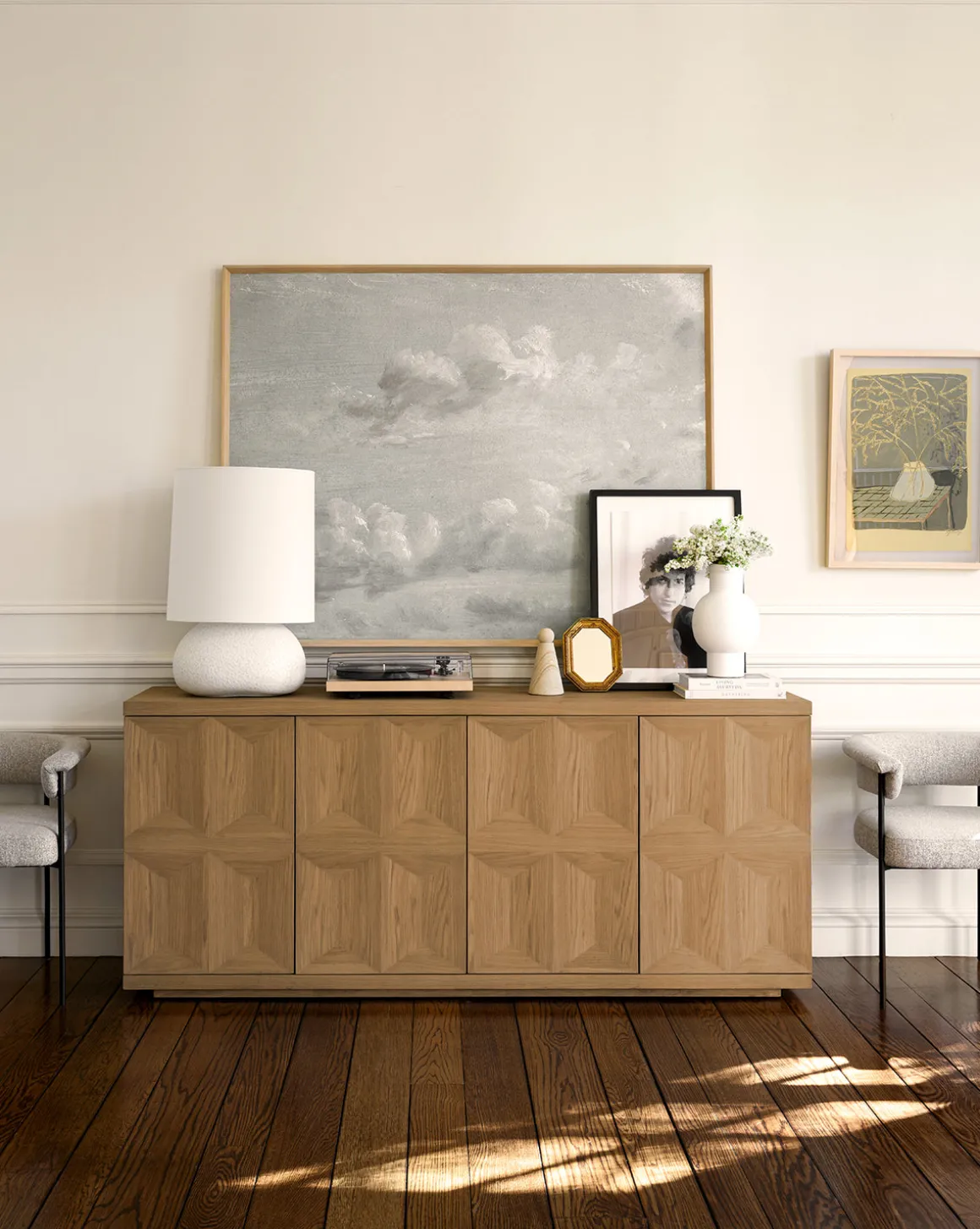With a blend of geometric and organic motifs that add dimension and depth, the Beacon Sideboard takes a streamlined approach to visual intricacy. It includes spacious storage that makes it as functional as it is beautiful, creating a piece that brings practicality to design. With a neutral finish, the Beacon Sideboard is a natural fit into any space.