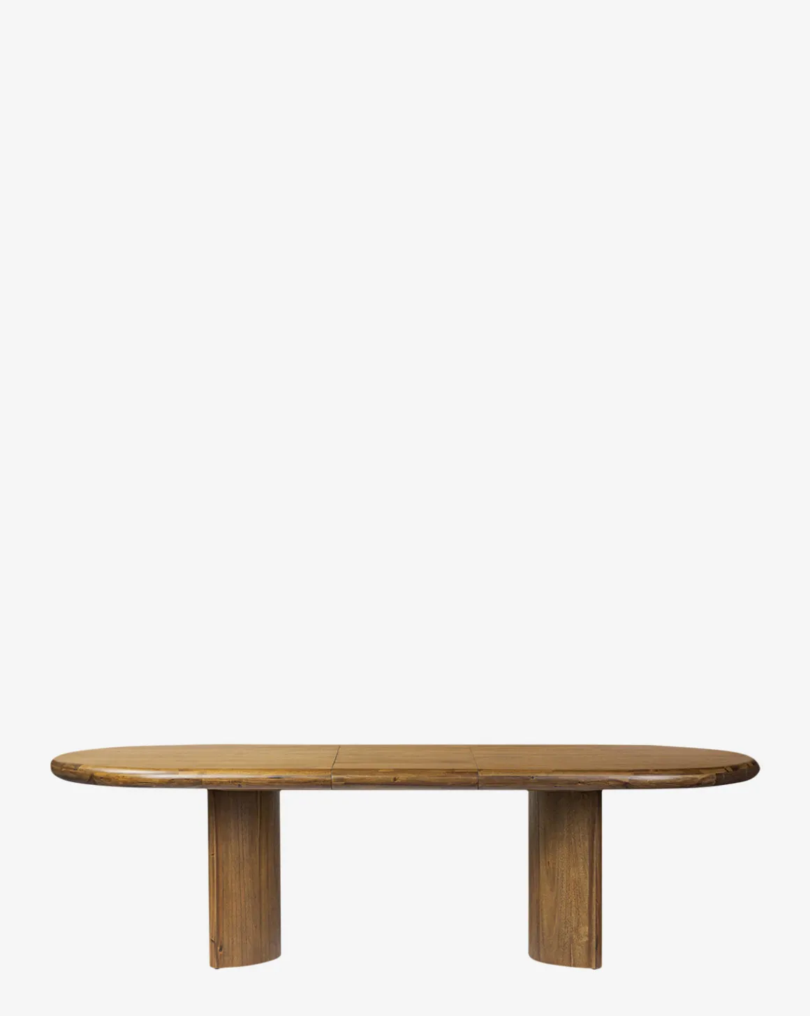 The Belvedere Extension Dining Table is crafted from acacia wood to bring style, warmth, and comfort to your home. The solid wood forms a sprawling oval tabletop, supported by sleek crescent-shaped legs that offer strength and stability. Its natural wood grain creates an element of beauty, elevating the space with an organic feel.
