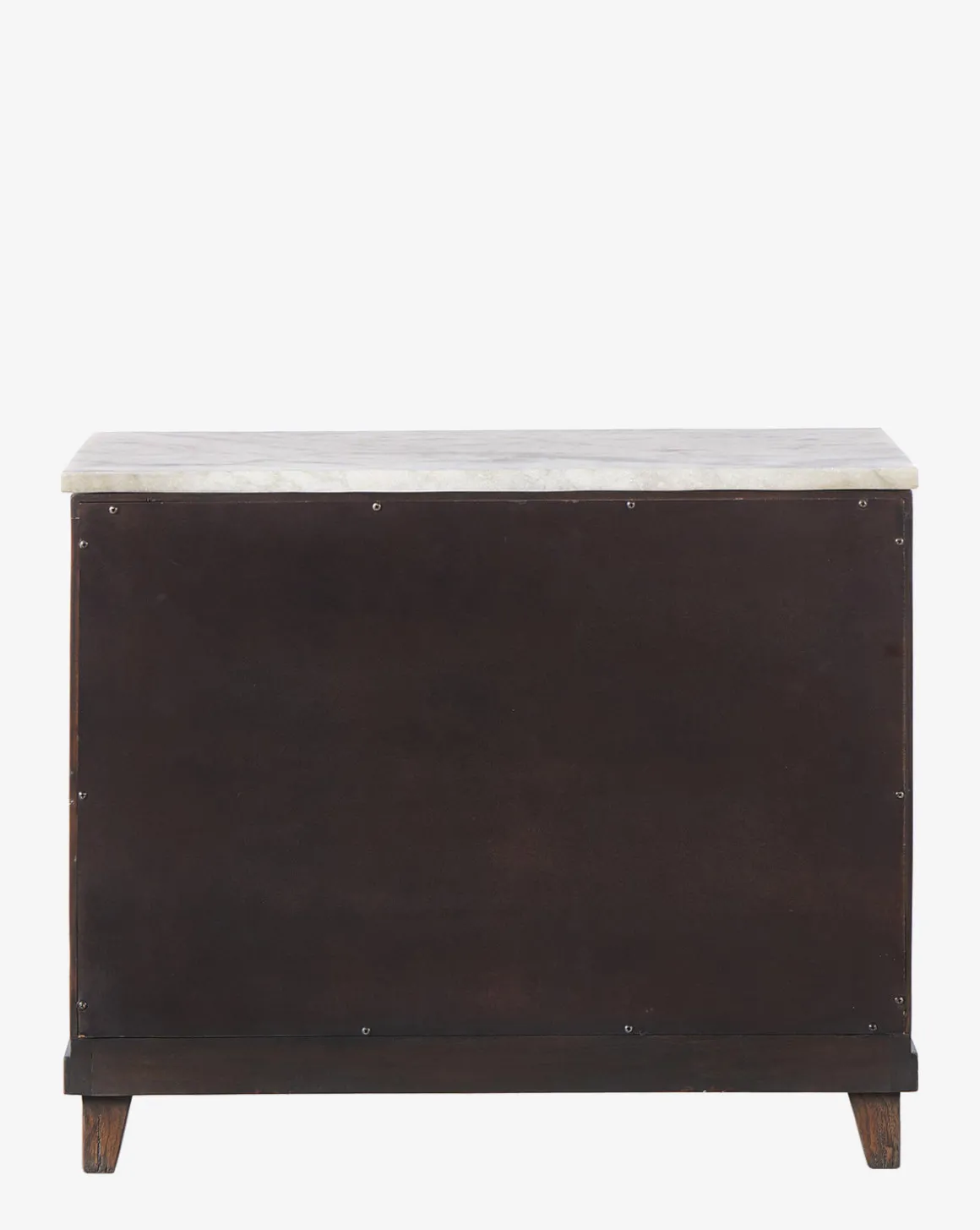 Crafted from antique reclaimed wood and featuring a white marble top, the Bettiga Nightstand stands the test of time while making an elegant statement. Brass hardware lends an element of charm to your bedroom styling.