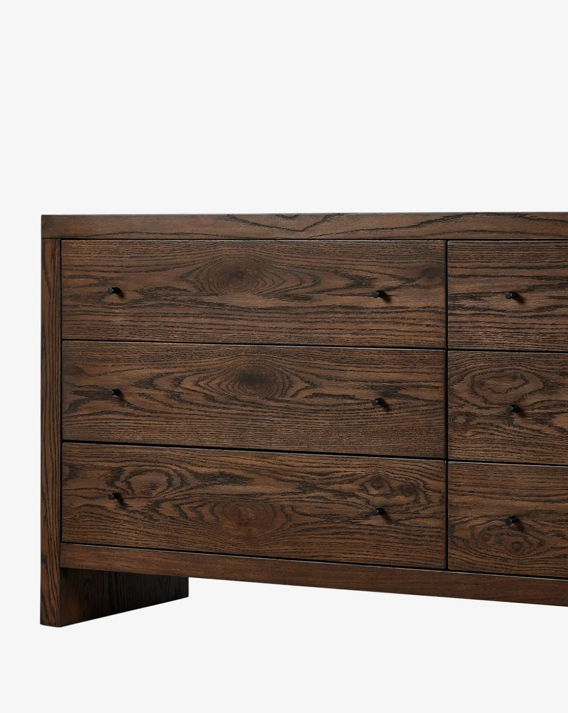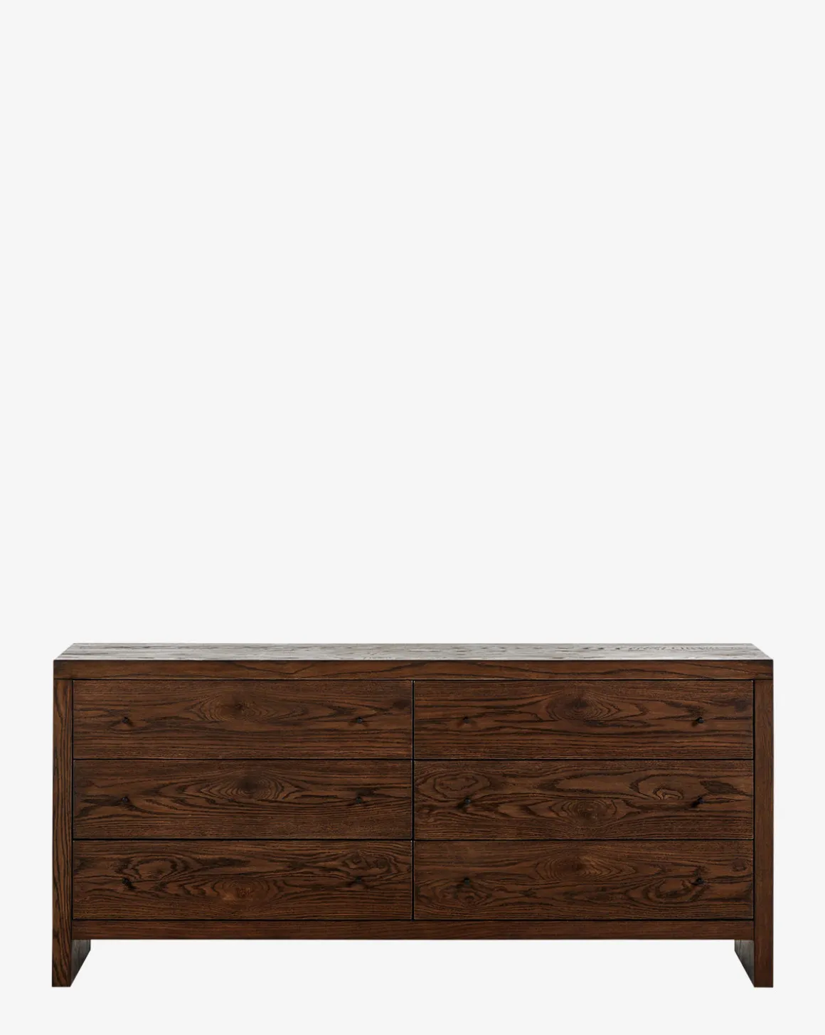 With a rich umber finish, the Britton 6 Drawer Dresser is straightforward and welcoming. Its natural details elevate its simple presence and its six spacious drawers allow for elegant functionality in your bedroom styling.