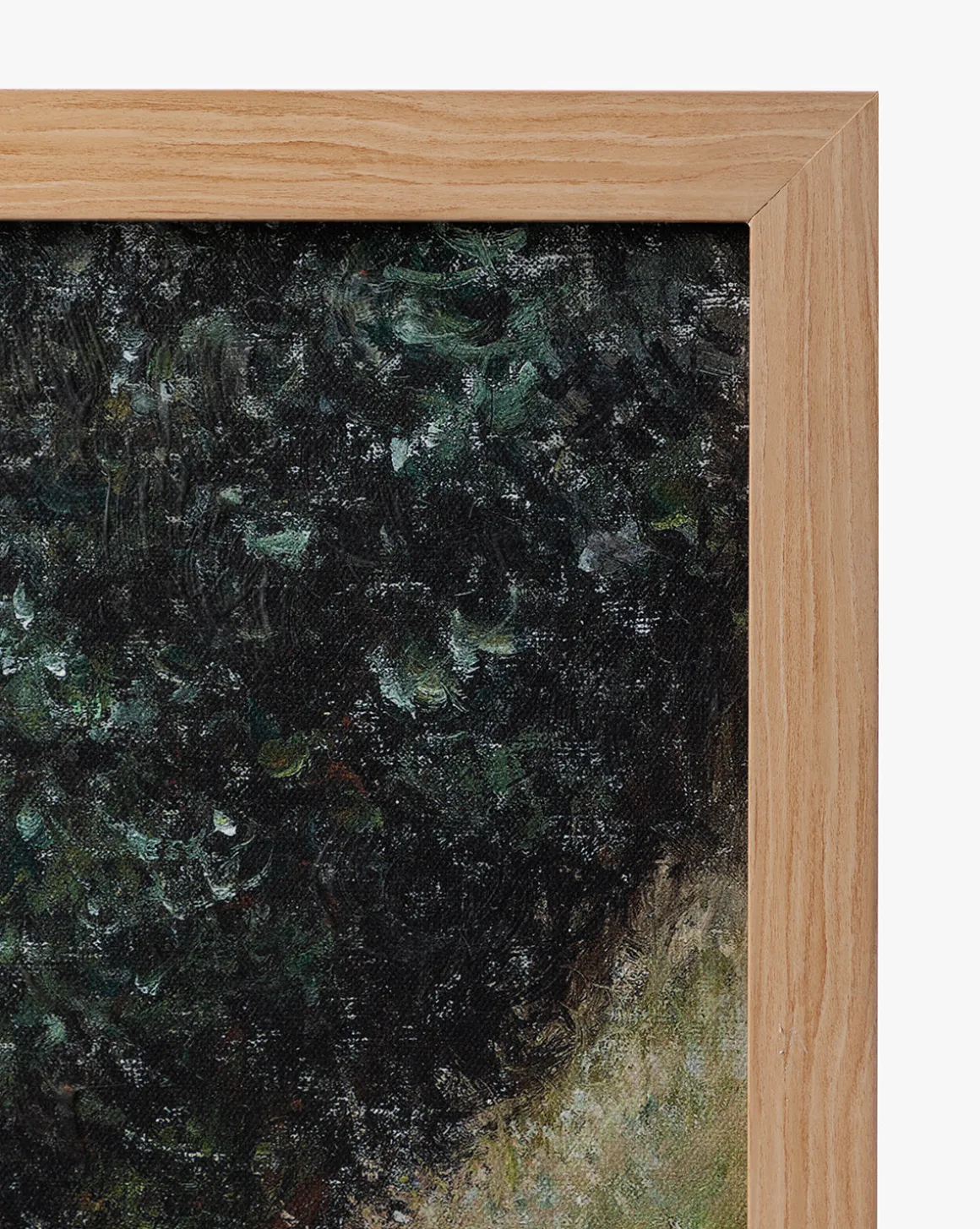 A soft yet lush composition, Carved Path offers viewers a peaceful escape and connection with nature. Artist-enhanced and gallery-wrapped giclee on canvas, the serene and inviting scene is beautifully presented in a natural wood oak frame.