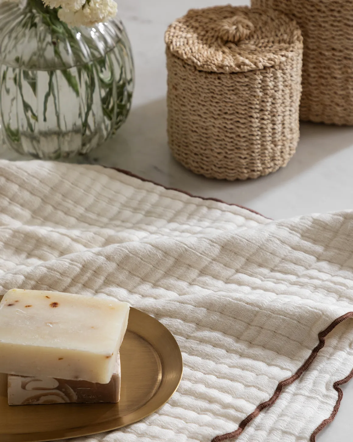 - Cream Gauze Cotton with Rust Edging