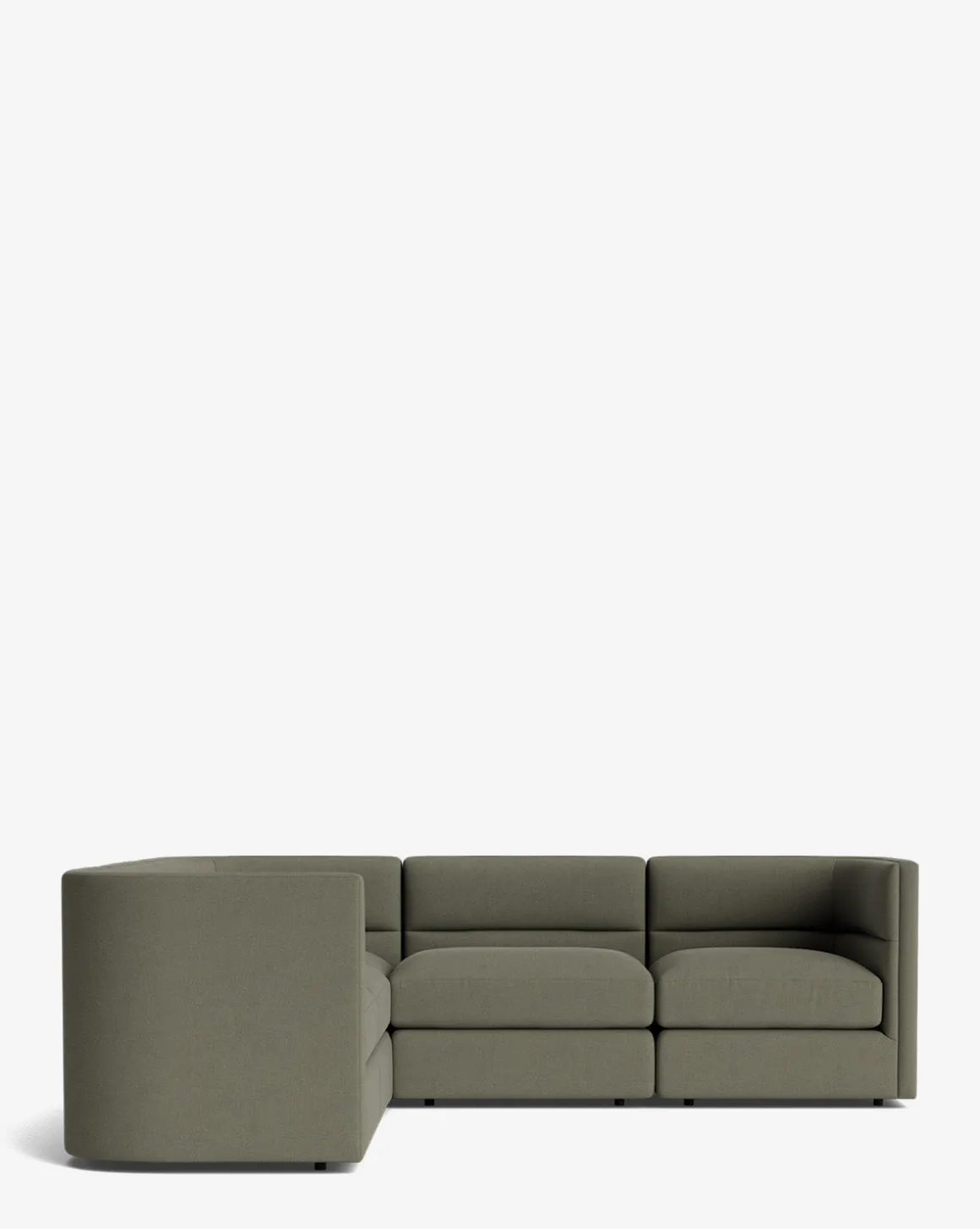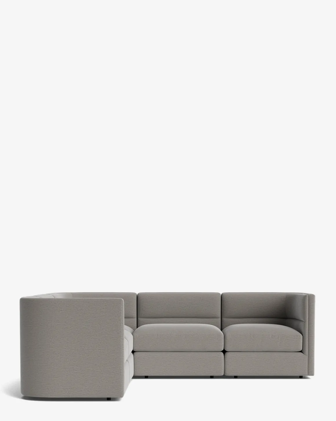 Our Claremont Modular L Sectional 99″ takes a bold and vintage-inspired approach to luxurious comfort. A functional accent to your living space, the wide seat cushion is complemented by a channeled back. Make this piece completely your own by choosing from our favorite high-quality fabric choices that suit your space and lifestyle.