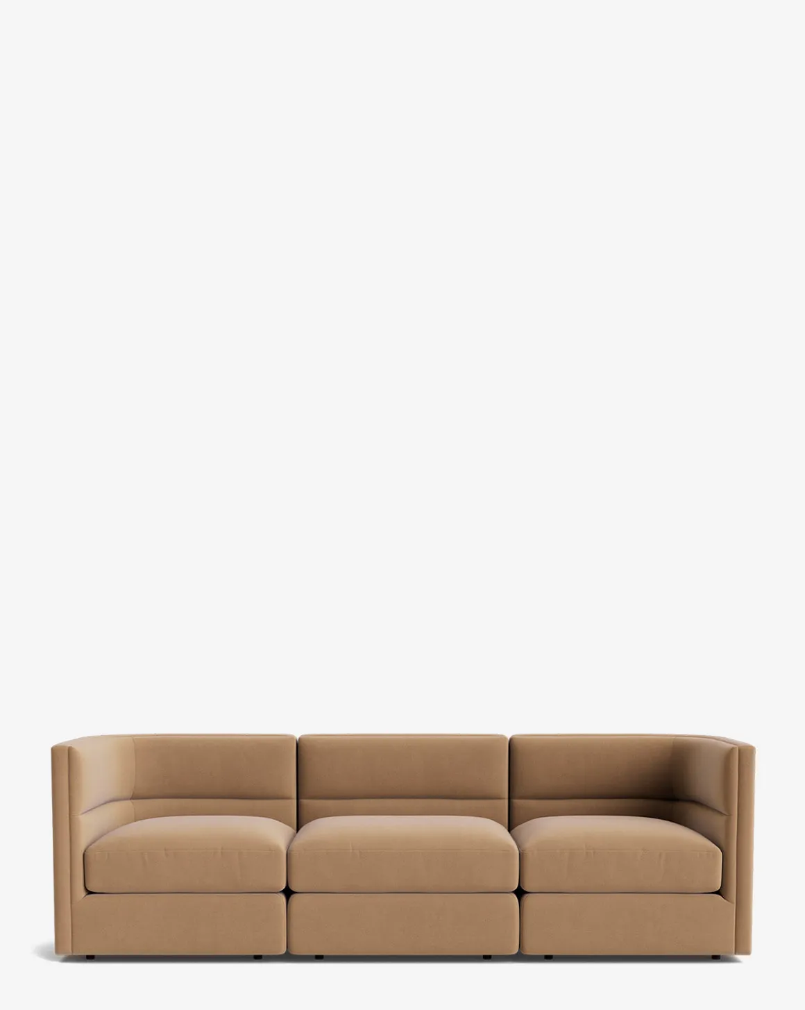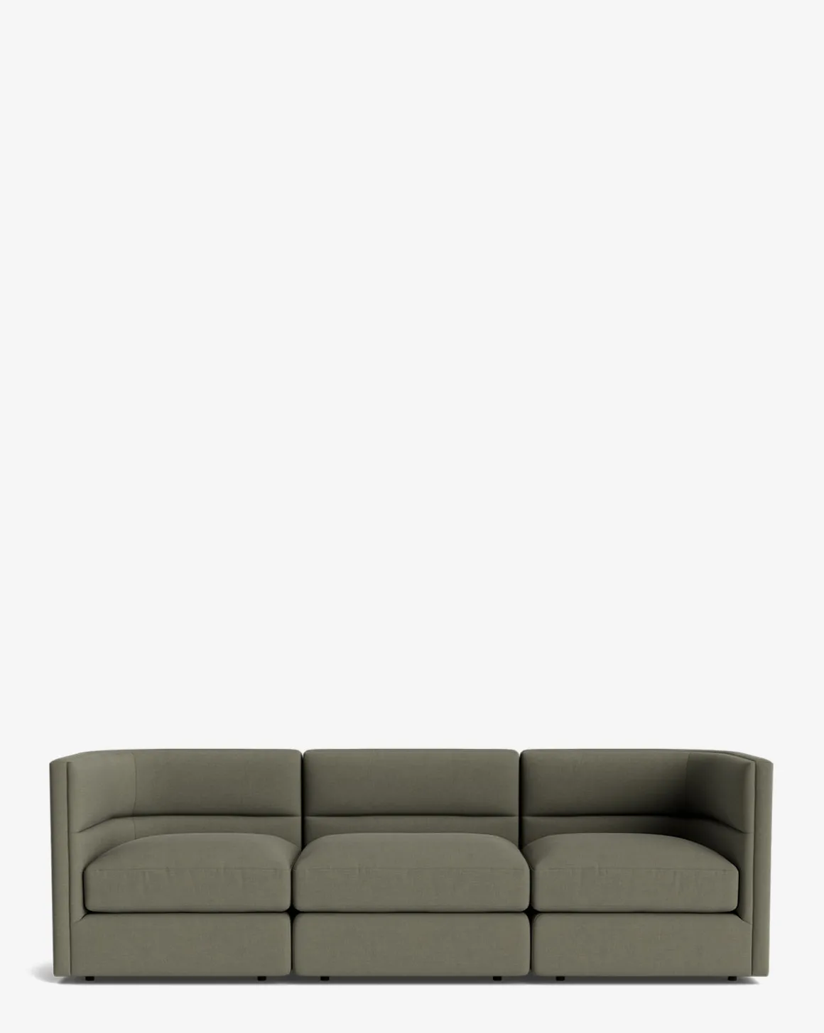 Our Claremont Modular Sofa 99″ takes a bold and vintage-inspired approach to luxurious comfort. A functional accent to your living space, the wide seat cushion is complemented by a channeled back. Make this piece completely your own by choosing from our favorite high-quality fabric choices that suit your space and lifestyle.
