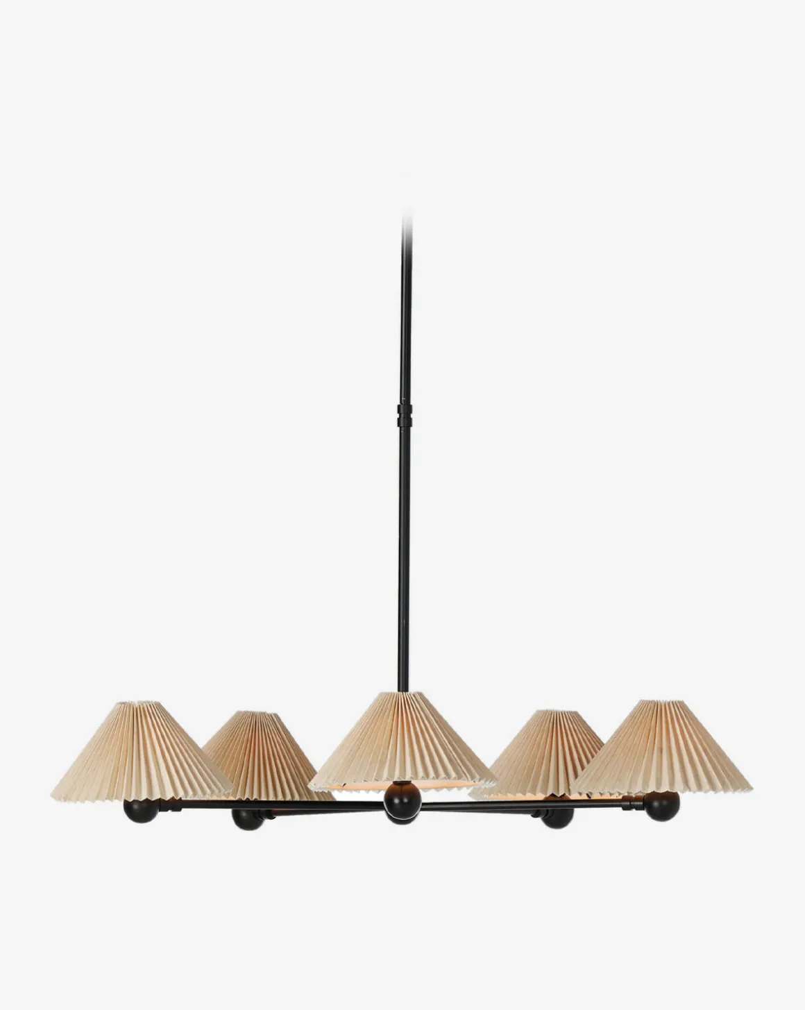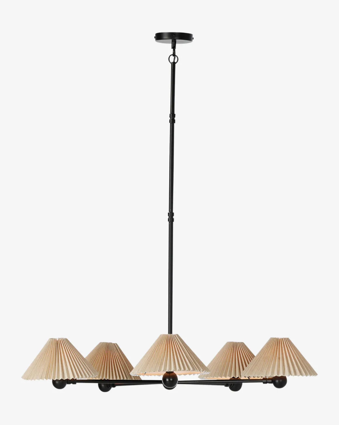 With soft accordion-pleated shades and industrial-inspired metal framework, the Clyde Chandelier brings a refined elegance to your home lighting. Its innovative double hook allows for angled ceiling installation, providing you with the flexibility to style the lighting to suit your space.