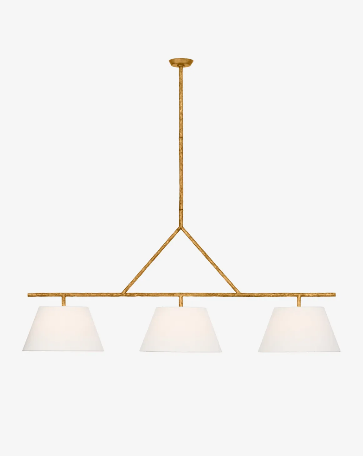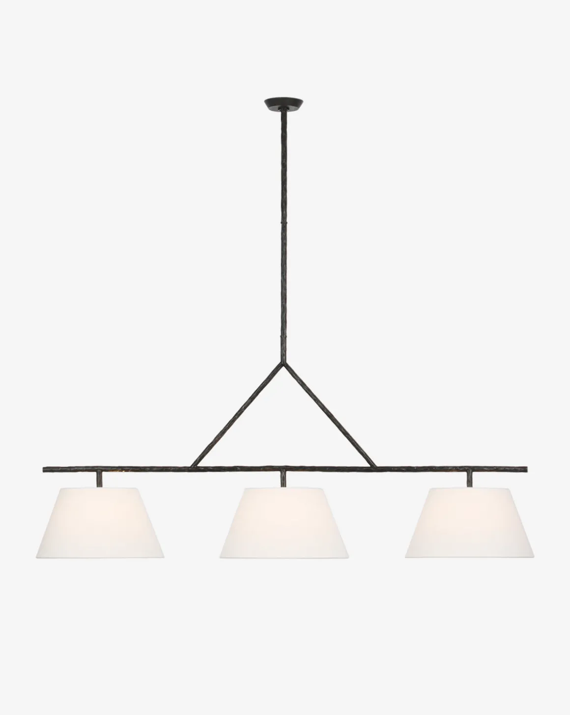 Elegant and geometric the Collette Linear Chandelier boasts thoughtful craftsmanship with its subtle details. The steel structure is available in two timeless finishes to complement its white linen shades.