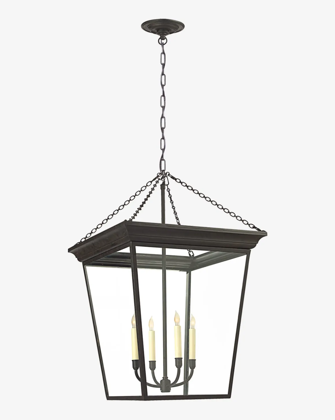 We love how the industrial details bring out the traditional aesthetic of the Cornice Hanging Lantern. The hanging chains, a cluster of candlesticks, and a fine finish option really make a difference.