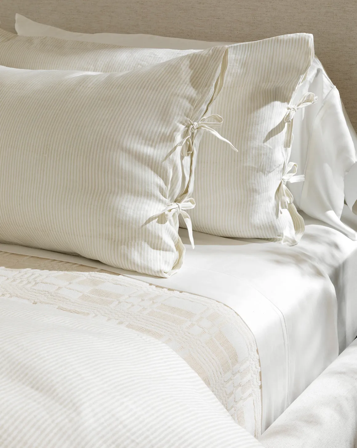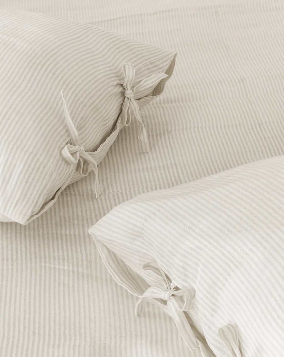 Subtle and soft, the Easton Striped Shams add a subdued pattern to bedding without overpowering other components of the room. This elegant pair of shams has a cream and oatmeal palette, using a classic design of thin-banded strips to give interest and gentle visual interest to your bed’s style.