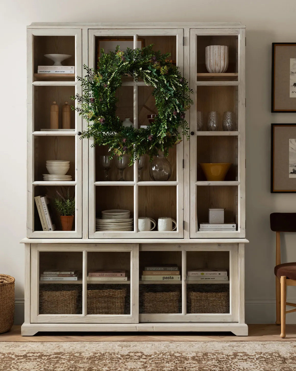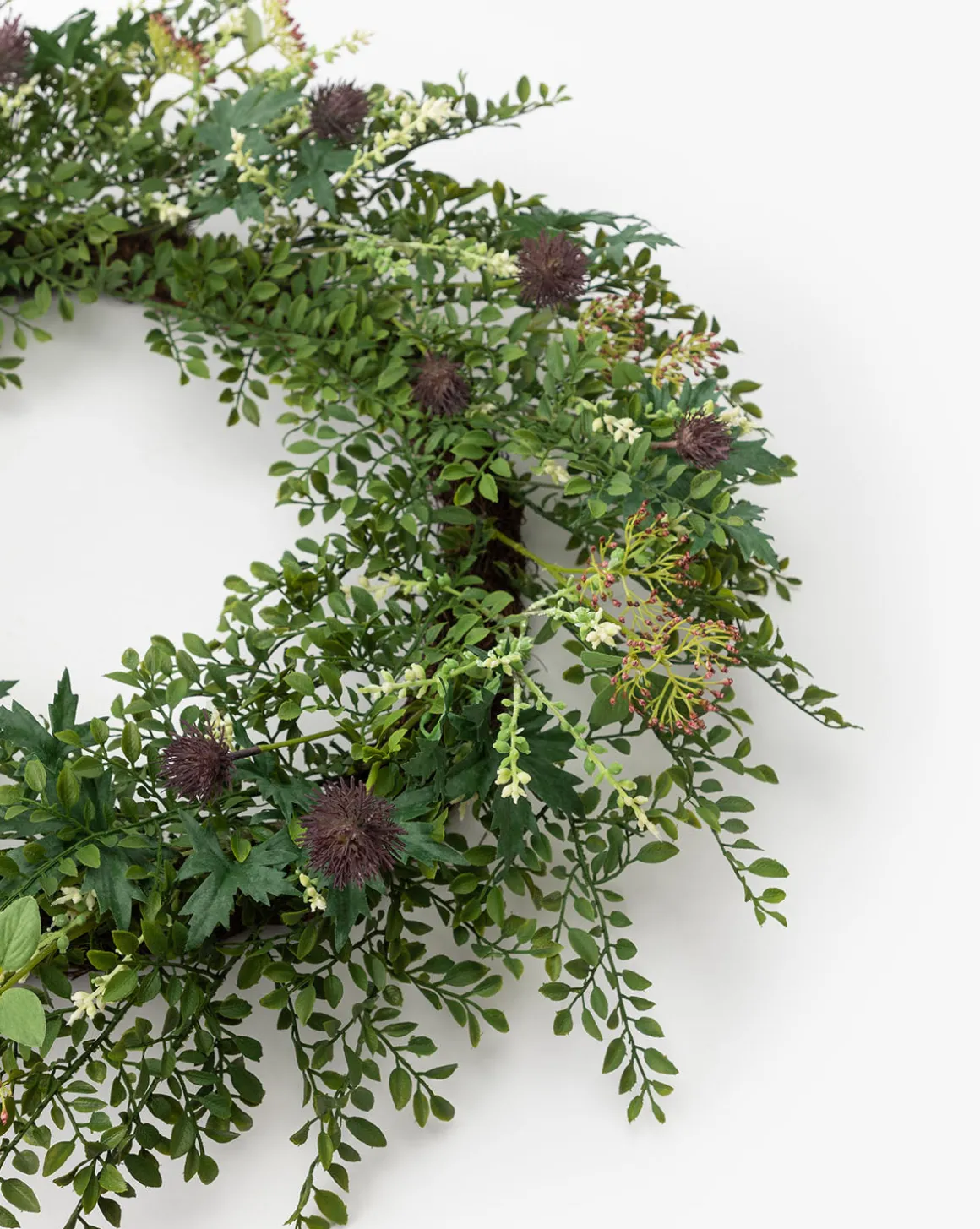 Lush and vibrant, the Faux Summerset Wreath brings the welcoming natural detail of thistle, Mediterranean viburnum buds, microtea debilis, and blackcurrant leaves to your home. The high-quality faux greenery is a seasonal staple with its elevated style that complements your decor from the front door to the dining room.