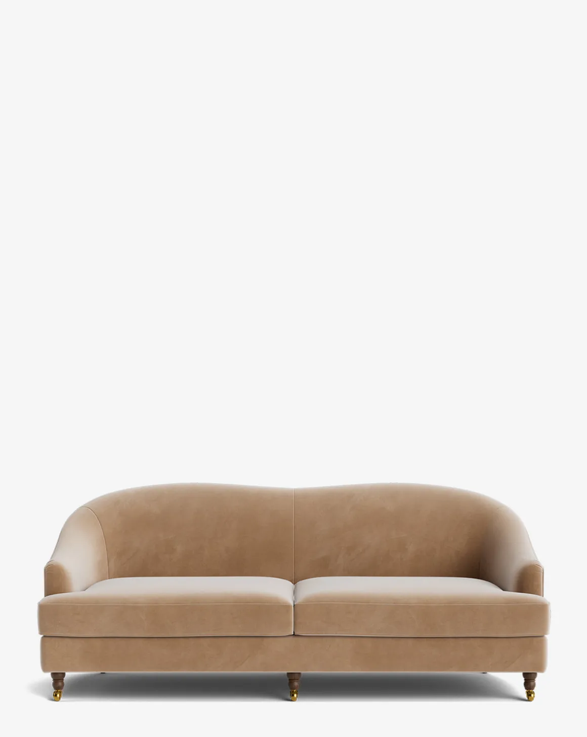 Blending modern and traditional design elements, our Fletcher Sofa 76″ was designed with sophisticated lounging in mind. Its subtle rolled arms, piping detail, and turned caster legs display masterful craftsmanship, while its cushions invite daily relaxation. Customizable in a wide array of fabrics, you can make this handcrafted sofa your own.