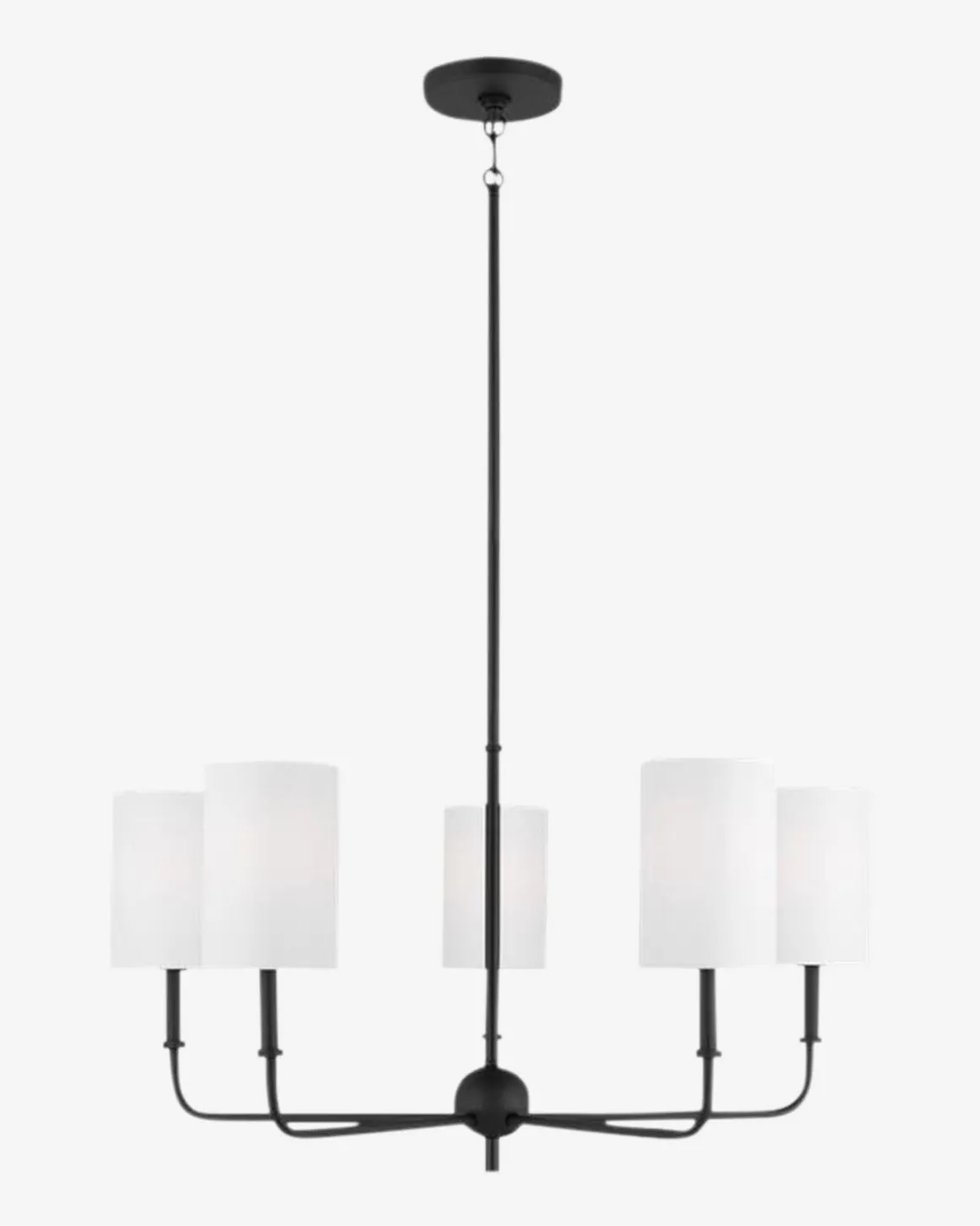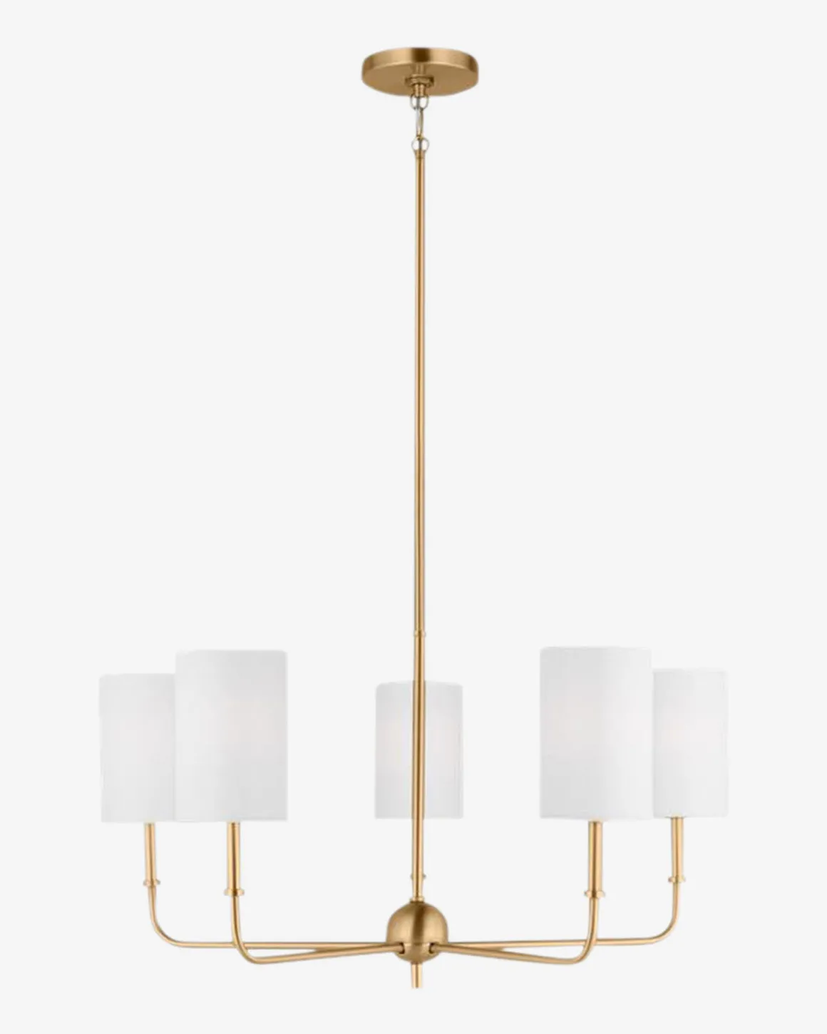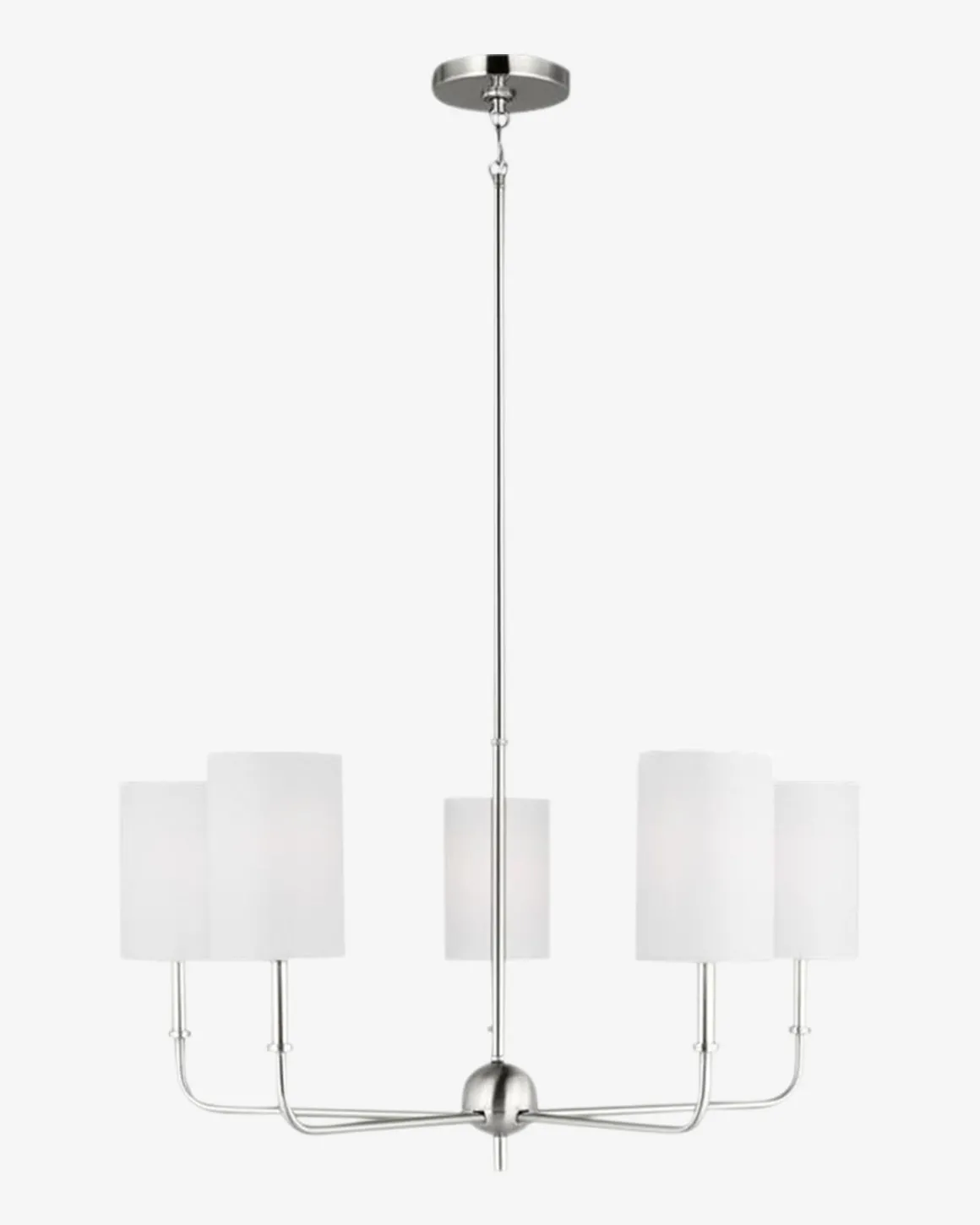 Elegant and geometric, the Foxdale Five Light Chandelier boasts thoughtful craftsmanship with its subtle details. The metal structure is finished in one of three timeless finishes to complement the white linen shades. With its classic silhouette, the chandelier casts beautiful light into your space.