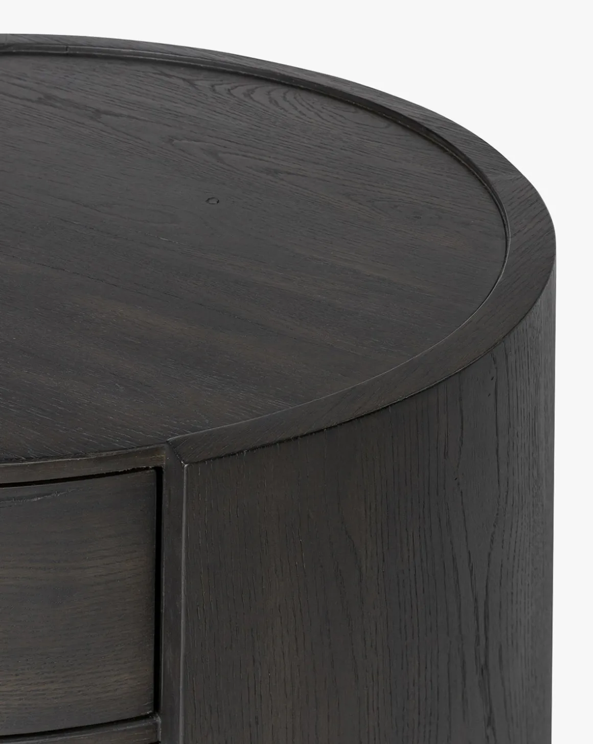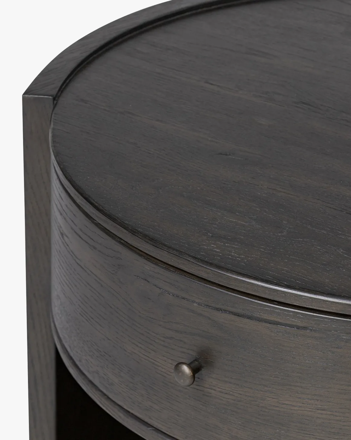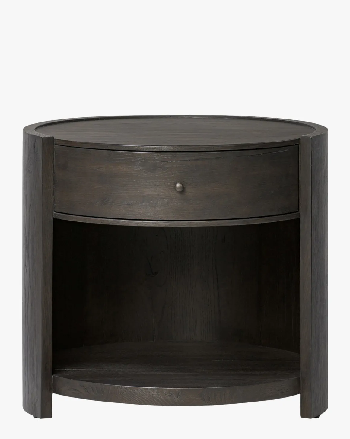 Rich contours and thoughtful details define the Glenndon Oak Nightstand. Crafted from black-finished oak, this rounded bedside piece features a spacious cubby and a single drawer with smooth metal glides and a bronzed pull. A refined, character-filled addition that keeps essentials beautifully within reach.