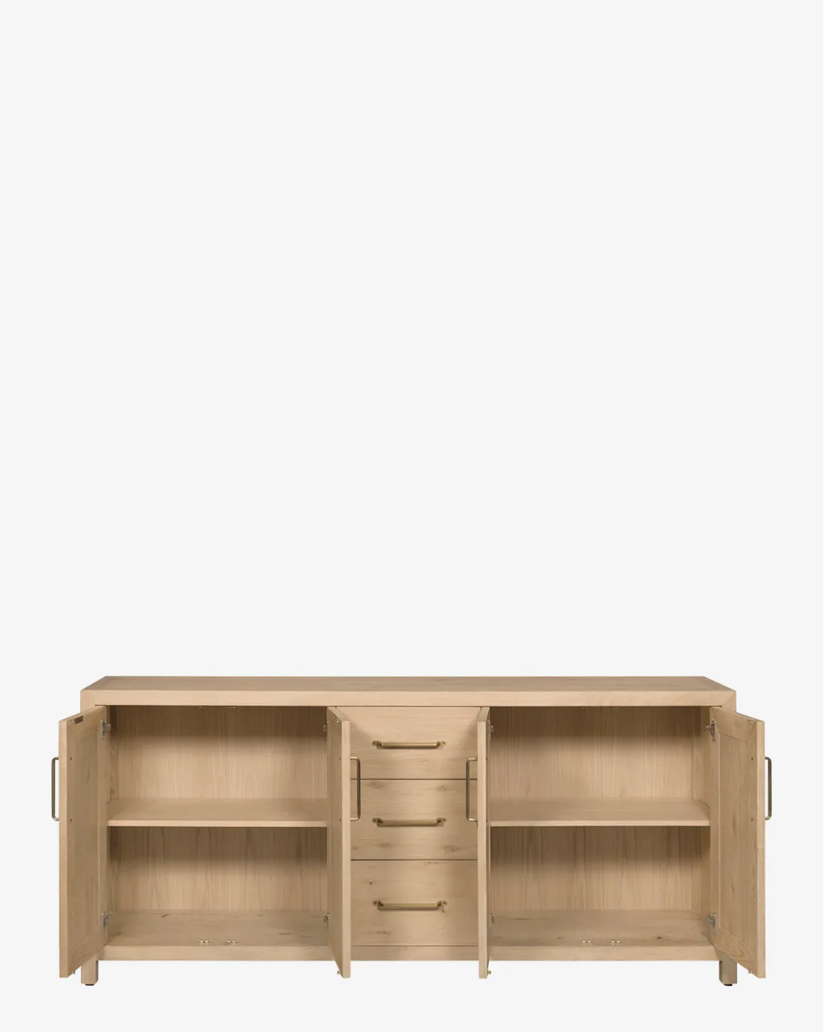 Designed with traditional roots, the Jax Console is made from oak wood with warm tones. Stately and practical, the console features brass hardware for a sophisticated feel.
