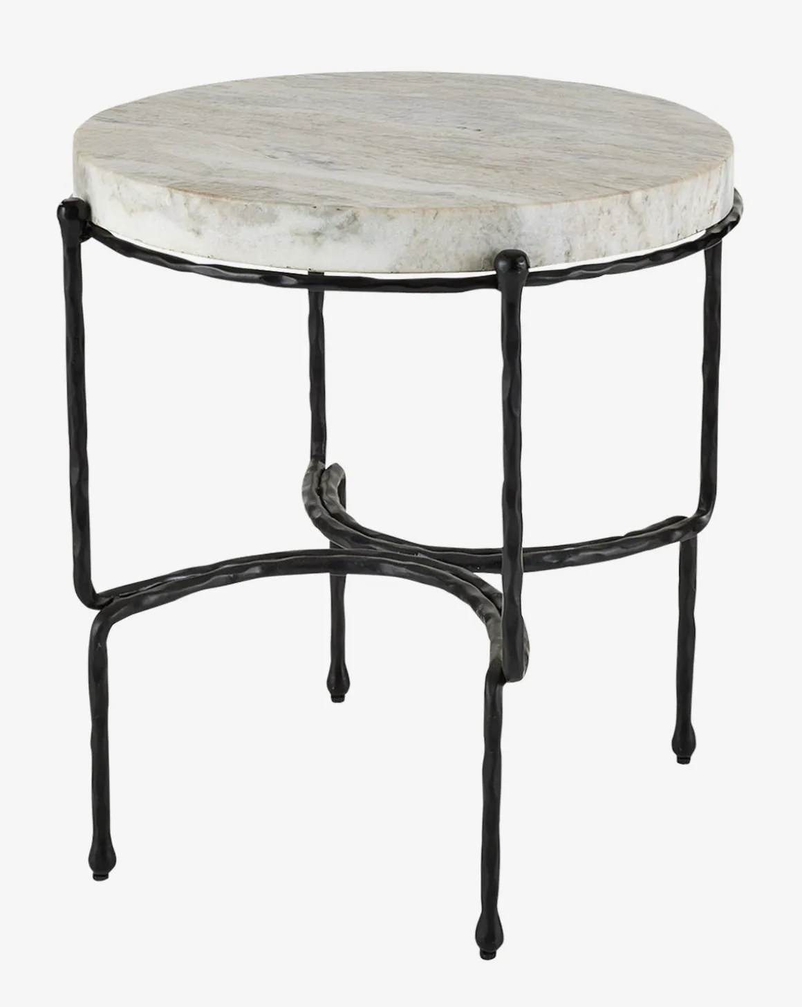 Make a statement with the elegantly mixed materials of the Jocelyn Side Table. With a marble tabletop and a blackened iron base, the intentional design of this side table makes it the perfect complement to a sofa or lounge chair.