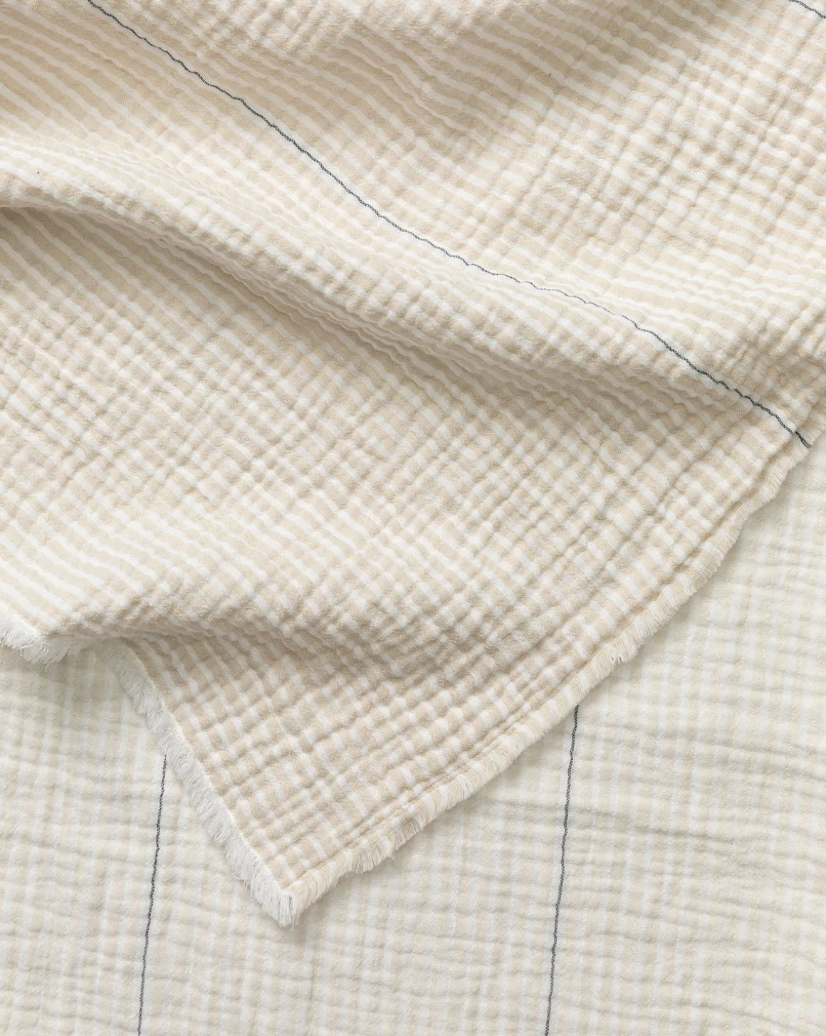 Our Keats Coverlet adds a soft, breathable layer of texture to your bedding for effortlessly elevated style and comfort. Lightweight and airy, it is crafted from 100% cotton with a woven three-layer gauze design that is perfect for warmer seasons. With a neutral palette and classic subtle stripe pattern, the coverlet offers timeless versatility while bringing a touch of understated character to your styling.