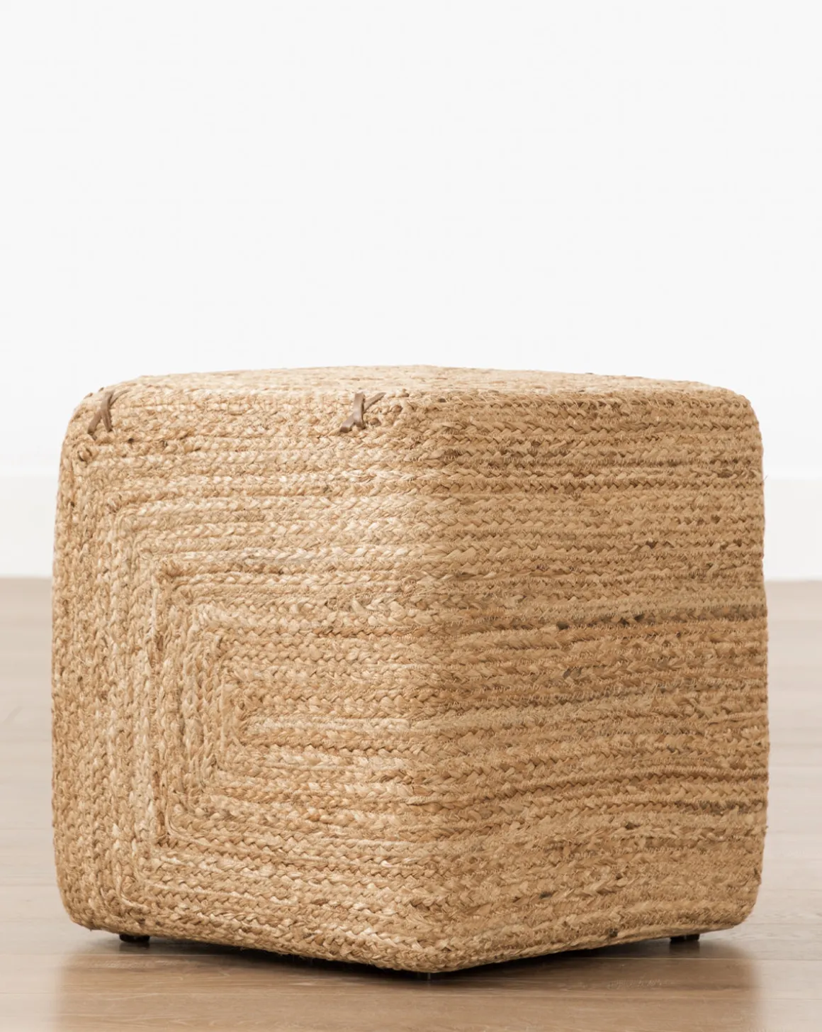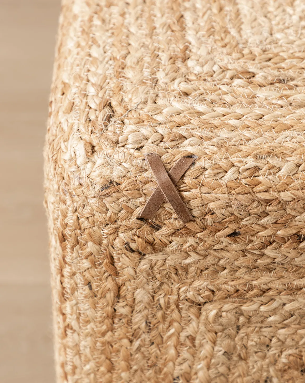Perfect for adding extra seating, or fitted with a small tray for your drink and snacks, the Kelvin Ottoman is crafted from 100% natural hand-woven jute. Featuring leather details on either side of the design, this versatile ottoman lends an airy look and feel while adding function to your living space.