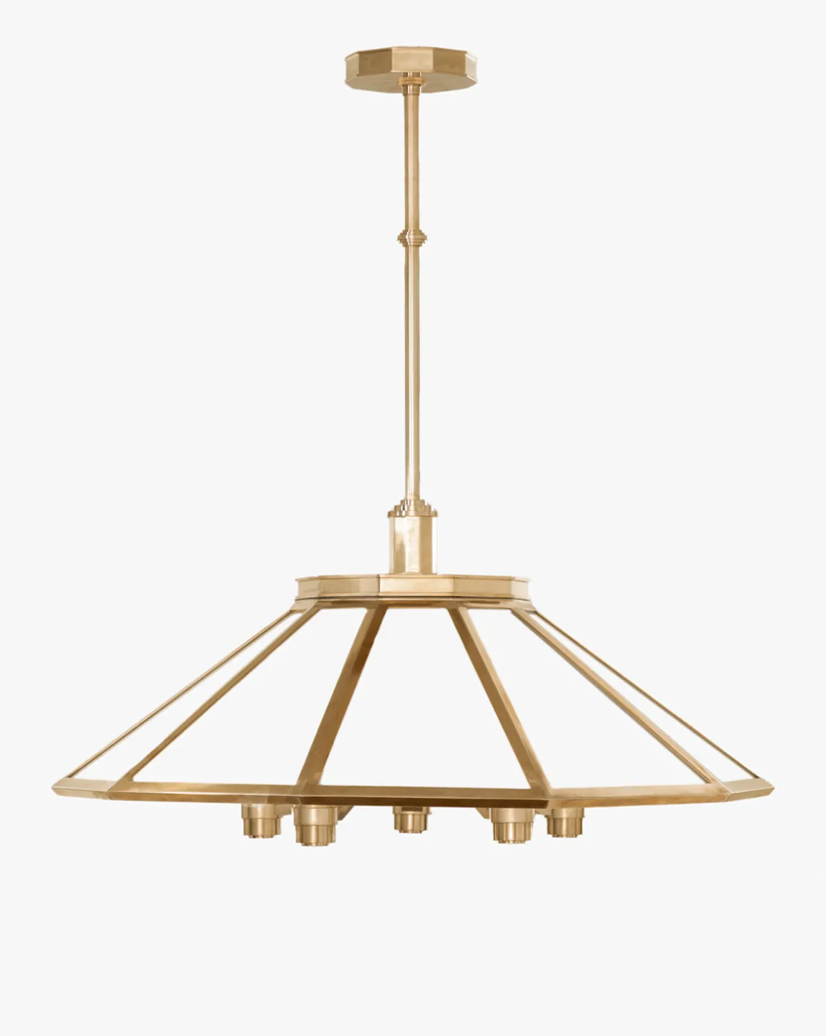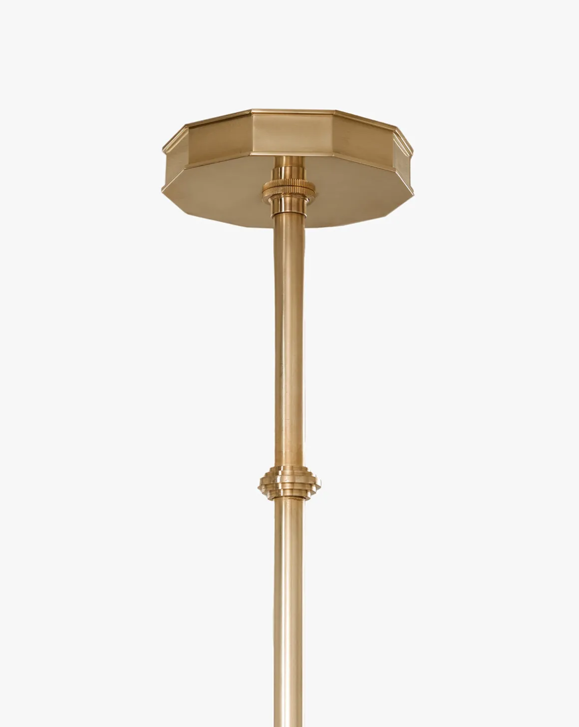 Make a statement with the Knightly Chandelier in antique brass. Incorporating a classic silhouette with traditional details like shaped sockets, a ball finial, and stepped-down rod junctions, it exudes timeless elegance. Antiqued mirrored glass panels add a lived-in, vintage presence, creating a warm and inviting glow.