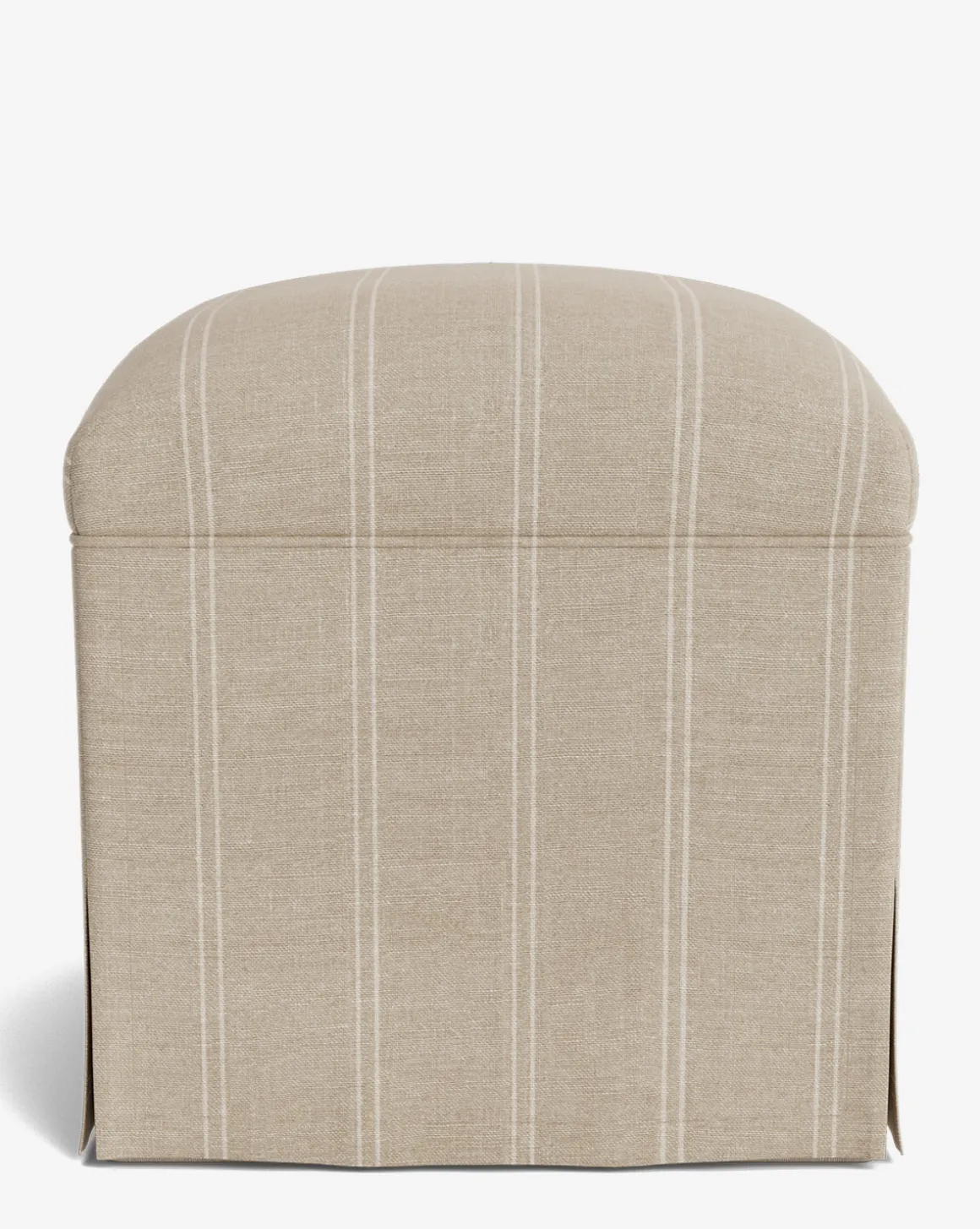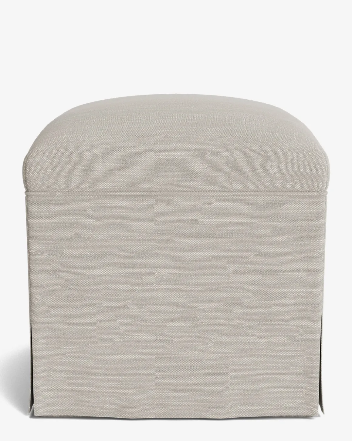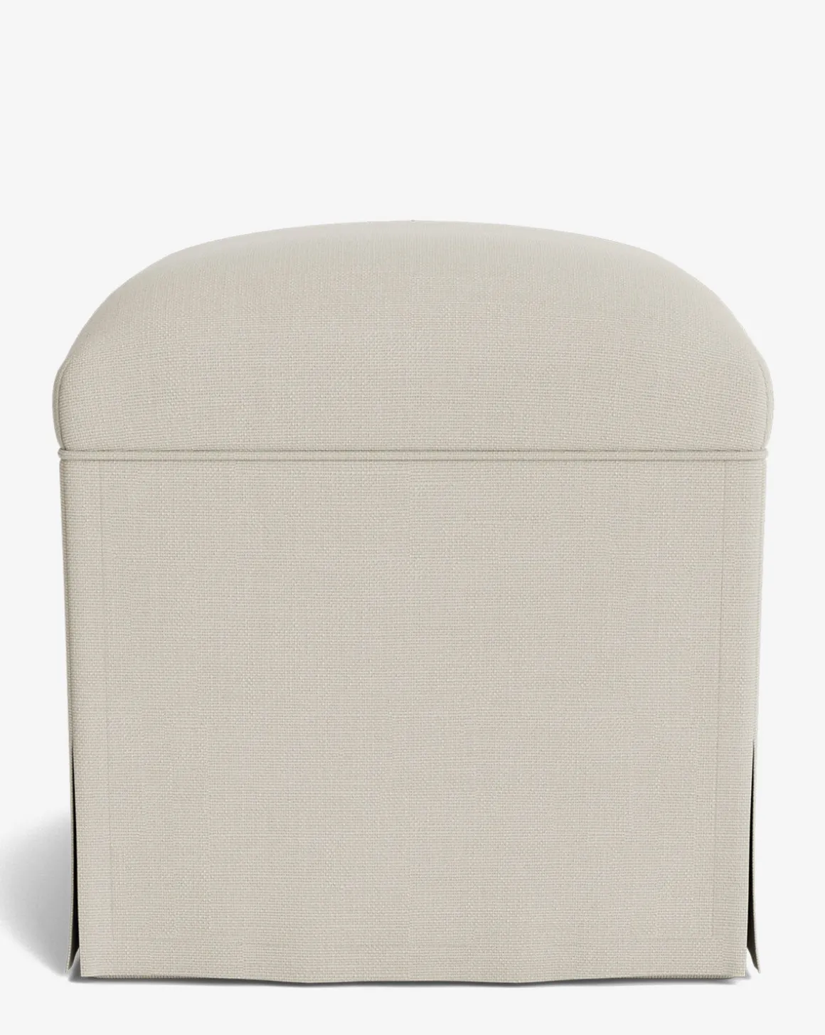 An updated take on a traditional design, our Latimer Ottoman features a fitted crown and faux slip skirt detailing. Soft and comfortable, the ottoman is a functional accent piece for your home styling. It is available in a classic yet playful Allspice and Tan Perennials Gingham or can be made-to-order with your choice of an array of high-quality fabrics.