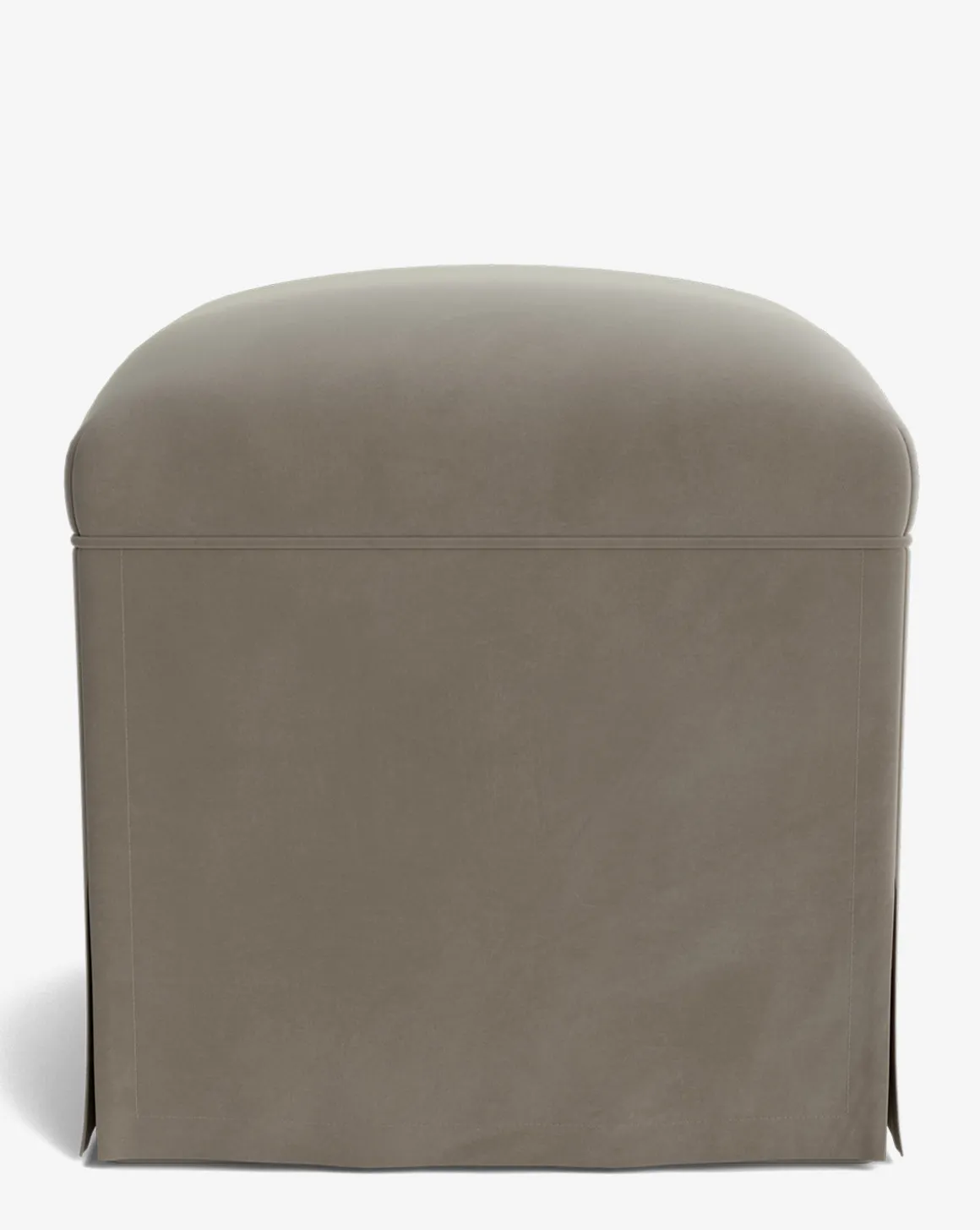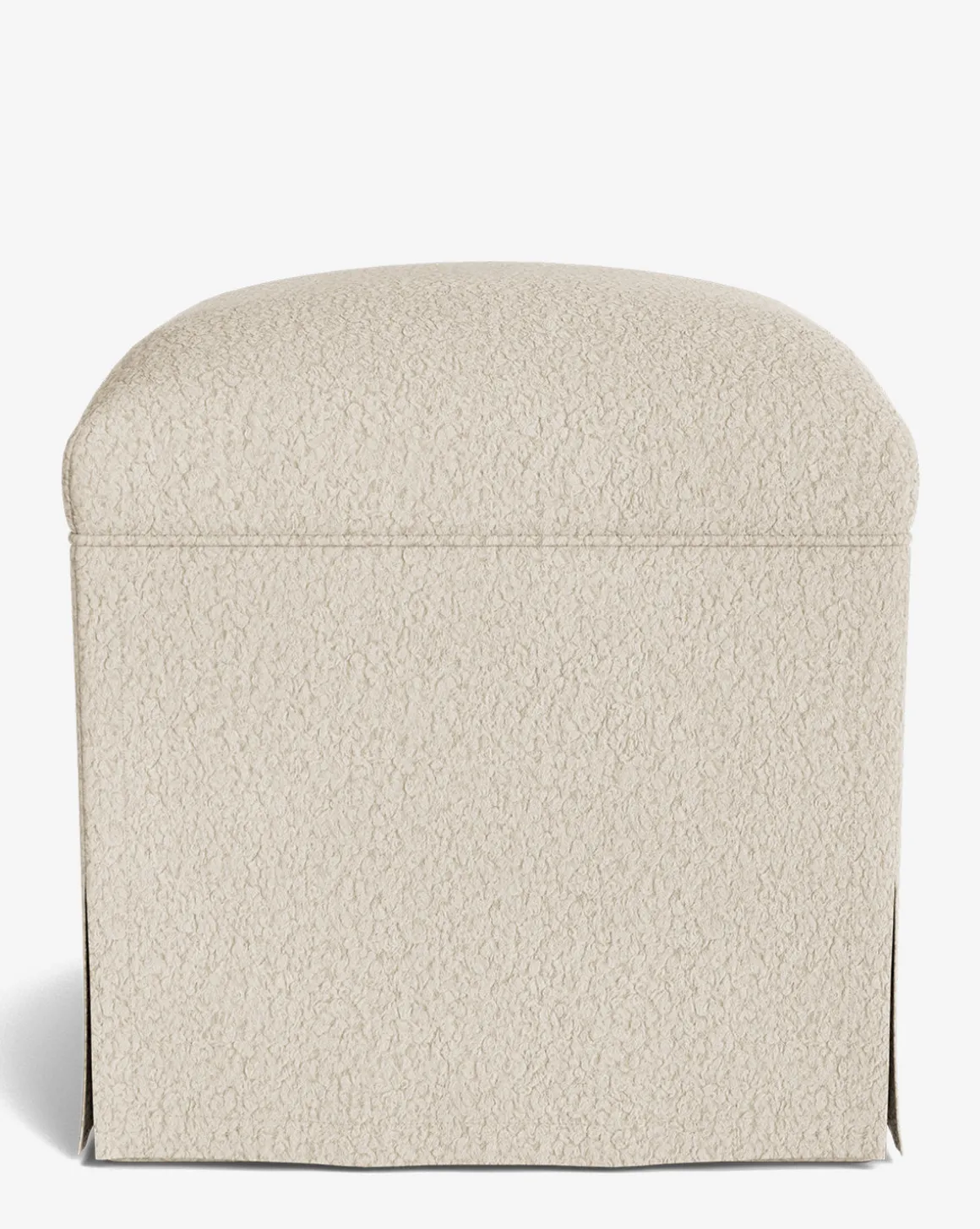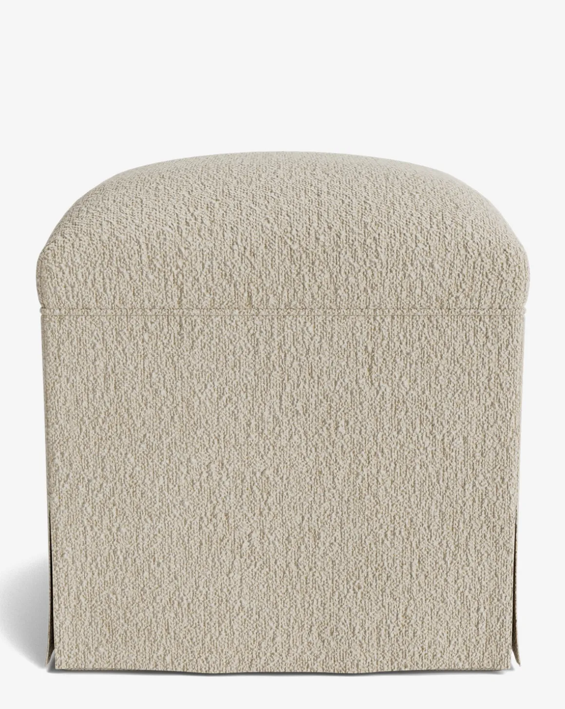 An updated take on a traditional design, our Latimer Ottoman features a fitted crown and faux slip skirt detailing. Soft and comfortable, the ottoman is a functional accent piece for your home styling. It is available in a classic yet playful Allspice and Tan Perennials Gingham or can be made-to-order with your choice of an array of high-quality fabrics.