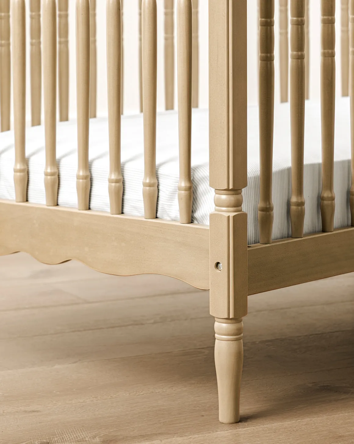 In a vintage-inspired design, the Liberty 3-in-1 Convertible Spindle Crib with Toddler Bed Conversion Kit by Namesake uses spindle bars to create a timeless style for nurseries. Choose from a selection of McGee & Co. exclusive finishes to make the piece uniquely yours. Crafted from solid pine wood, the crib is made to convert to a toddler and daybeds as your little one grows.