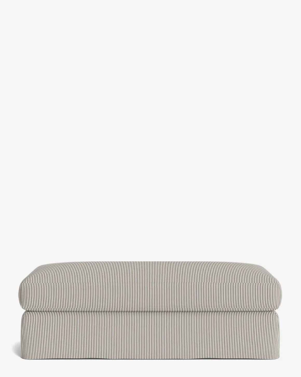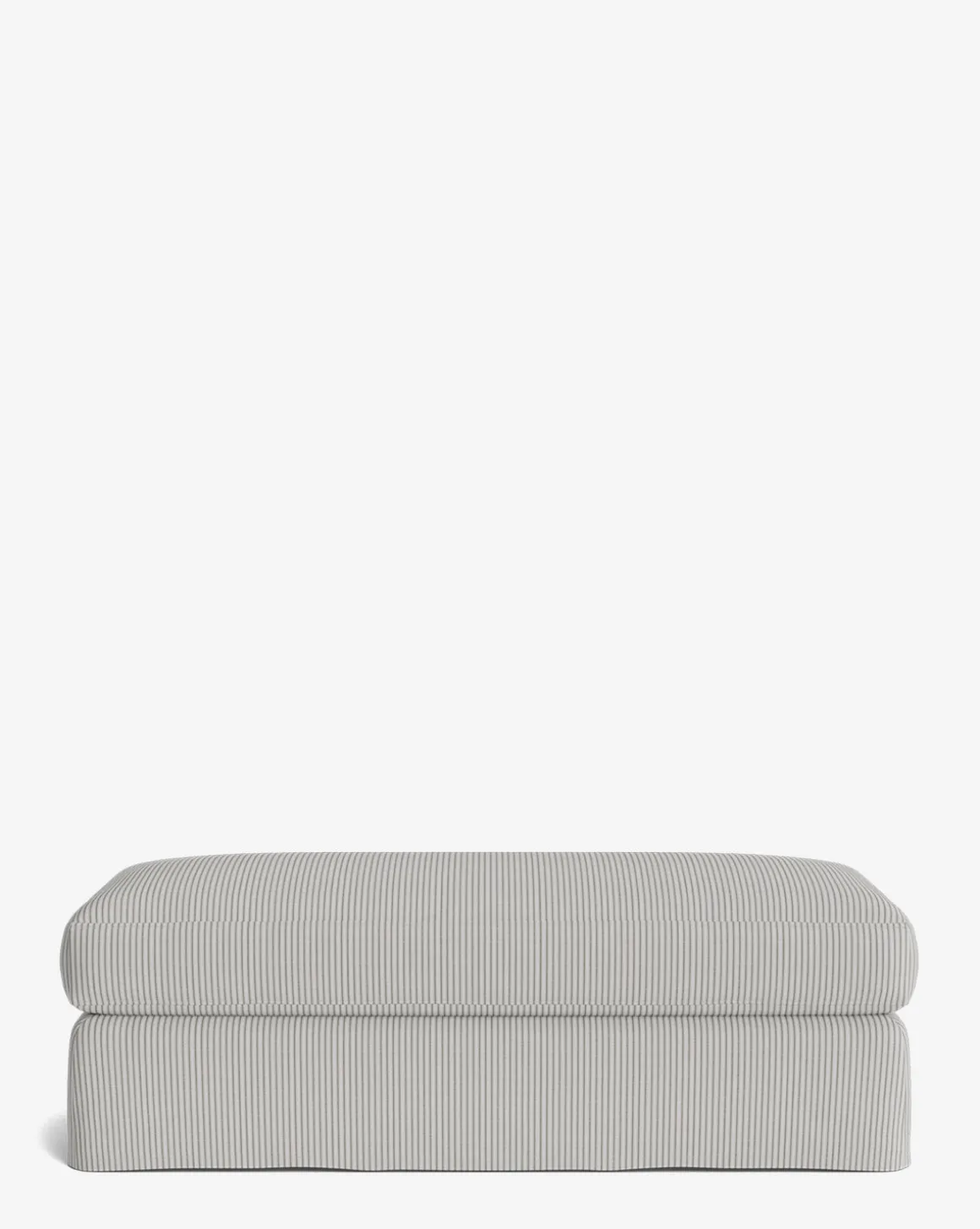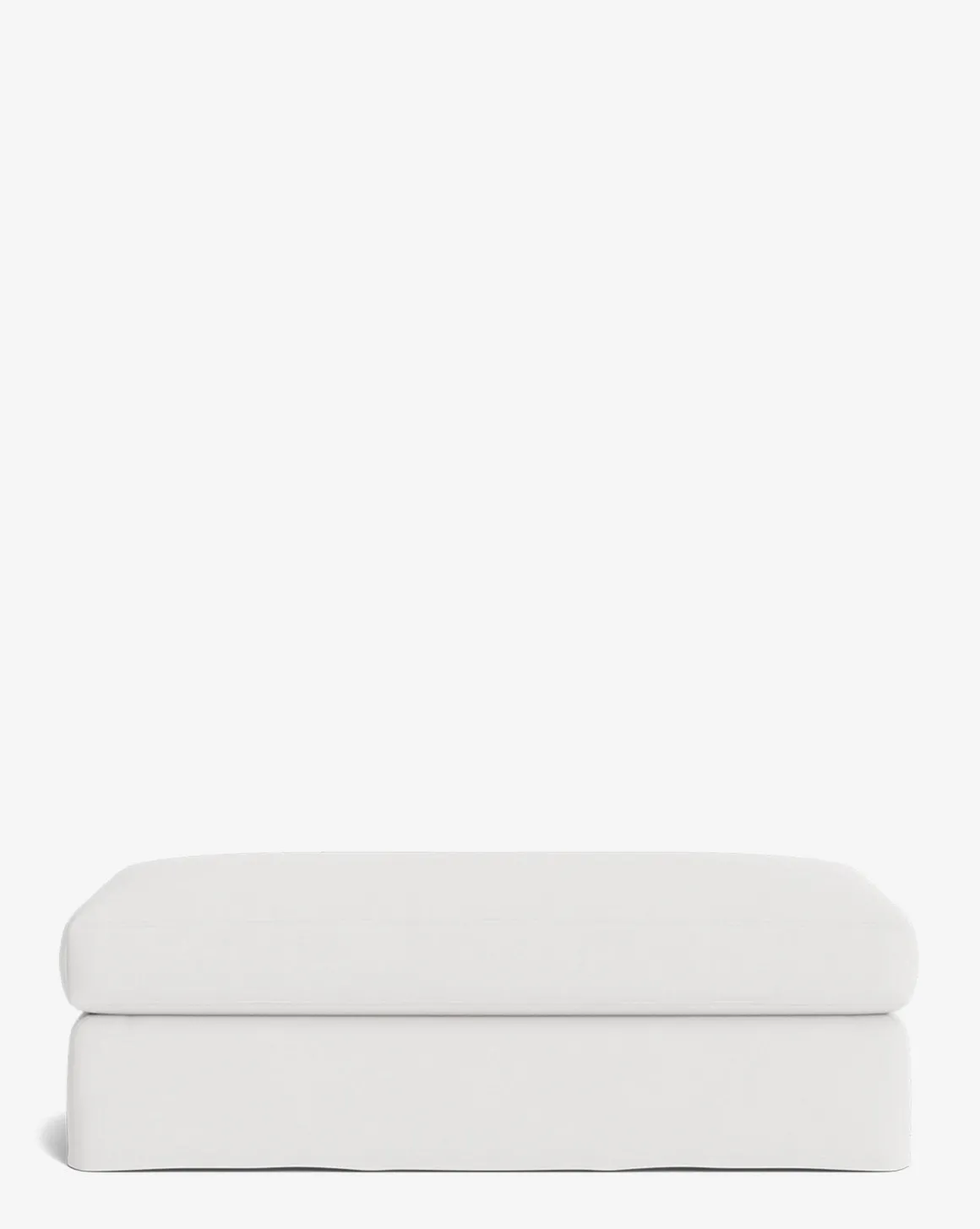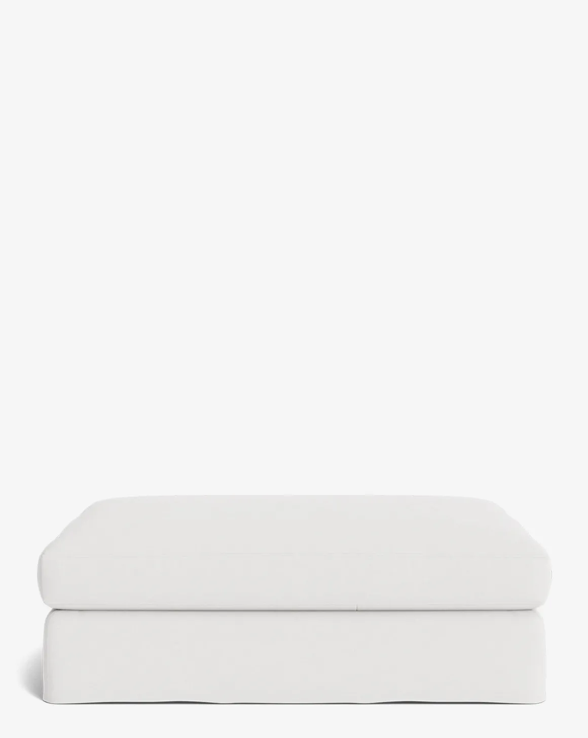 Both contemporary and classic, the streamlined Macy Slipcover Ottoman is bench-made for quality and durability. Ideal for styling in living rooms or a more casual family gathering area, the ottoman is customizable in a wide array of our favorite fabrics. A down, feather, and foam-core cushion makes this piece luxuriously soft, as its wide design brings ultimate comfort to your space.