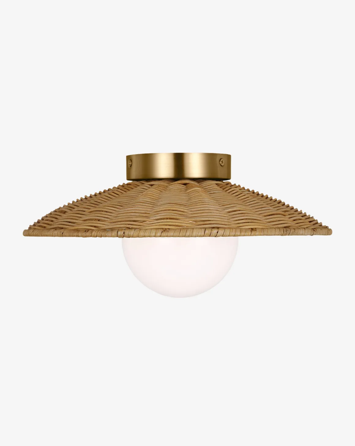Featuring a streamlined yet organic design and a shade made from natural rattan, the Mari Medium Flush Mount shines bright wherever it is styled. Displaying a milk glass lens globe bulb, this flush mount is beautifully balanced.