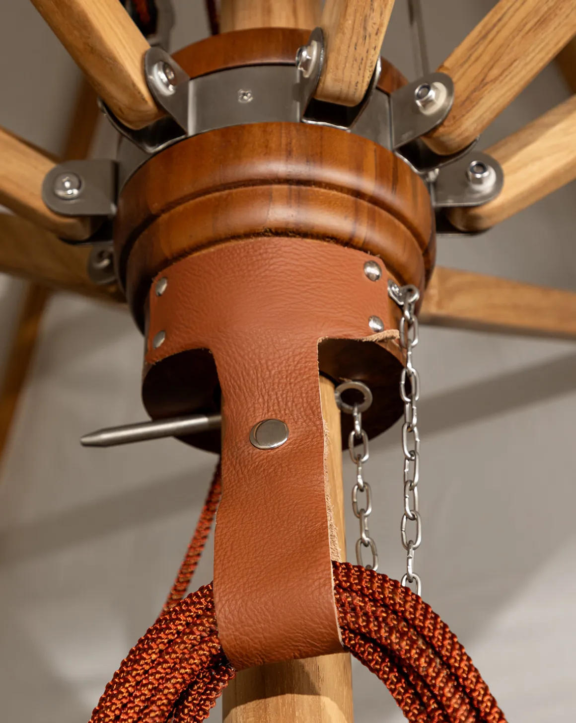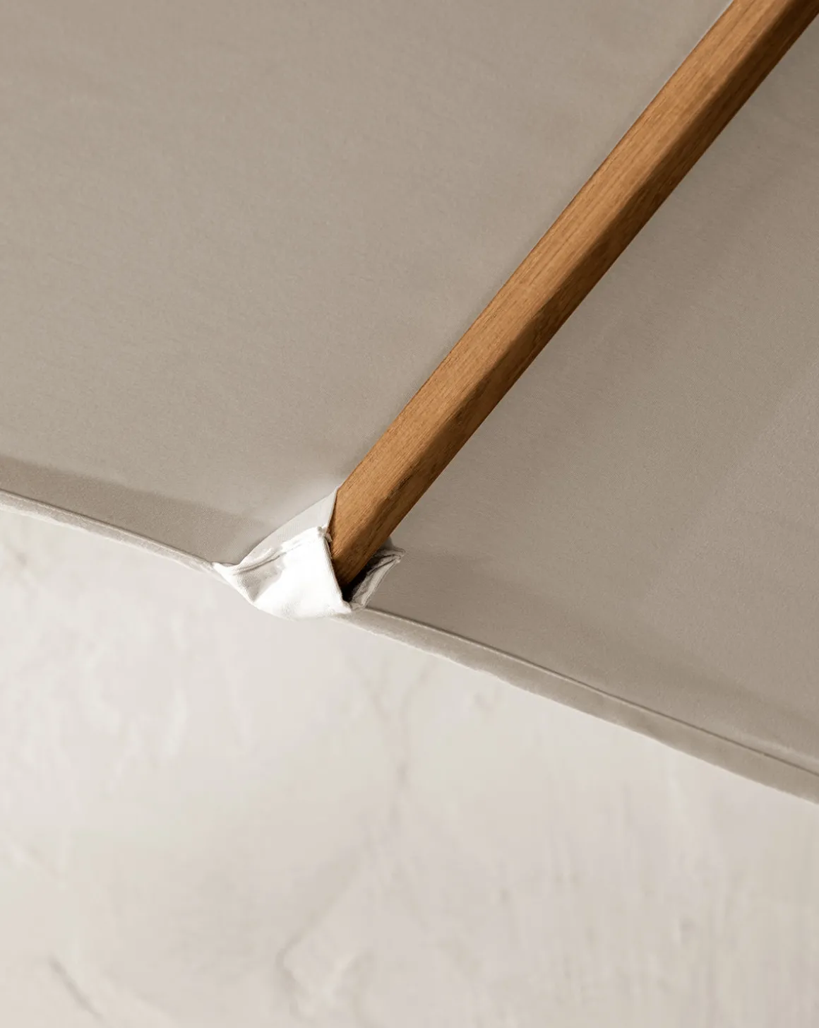 In a classic and playful design, the Marques Outdoor Rectangular Umbrella brings beautiful functionality to your outdoor furniture. The weather-durable acrylic features leather details and a teak pole.