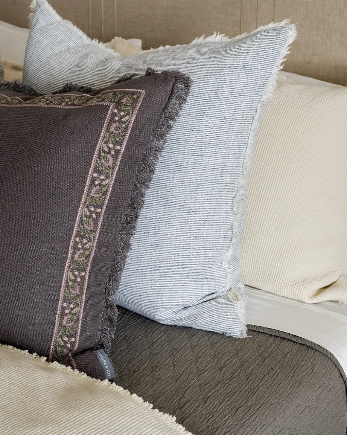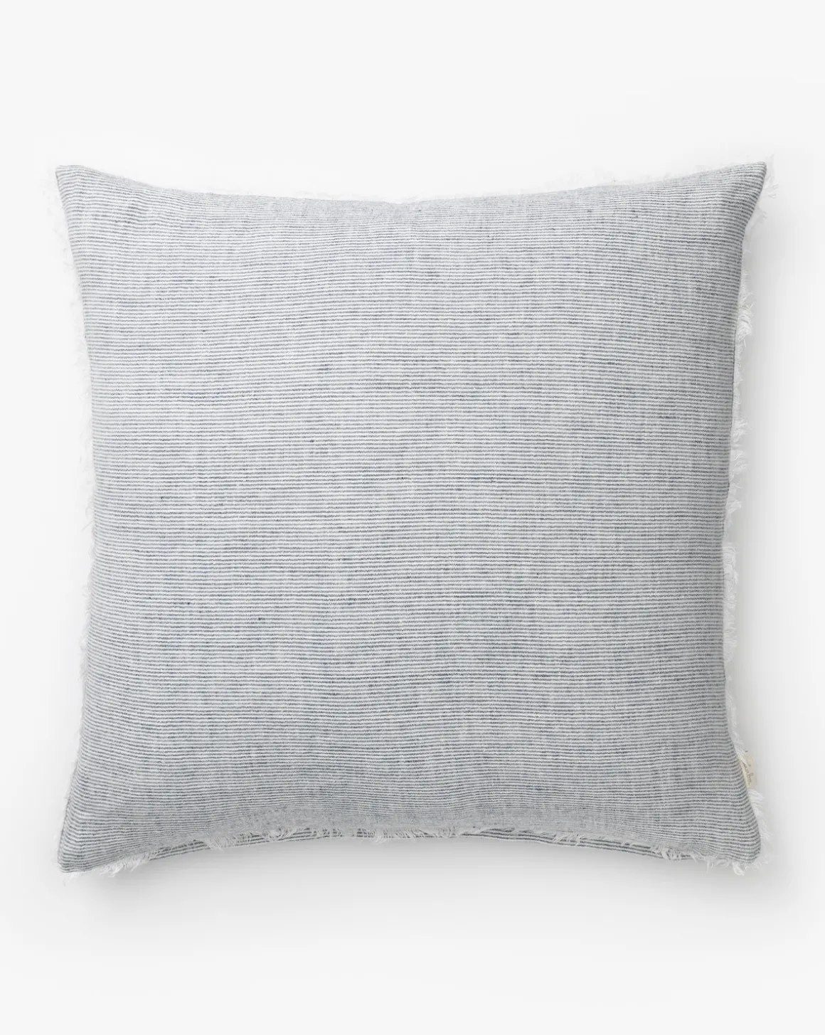 Made from linen, the McCallen Pillow is full of subtle texture and depth – perfect for layering with your pillow collection. A sophisticated fringe edge lends added textural interest to the gray or navy striped pillow.