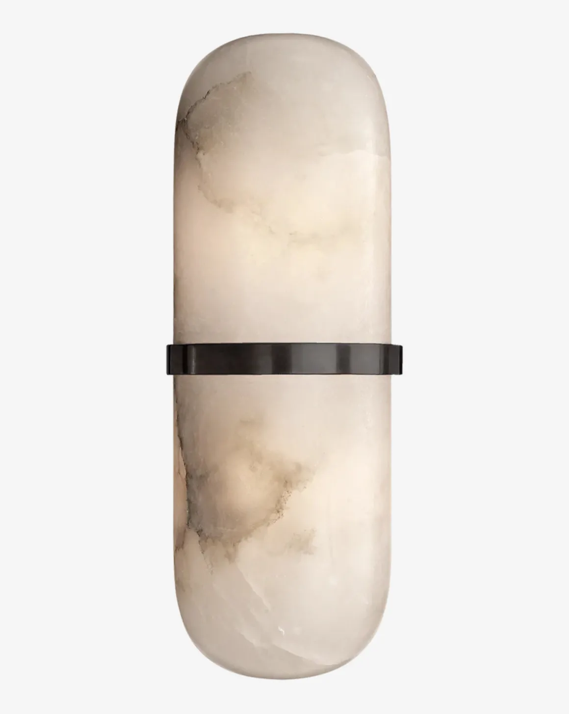Modern and elegant, our Melange Pill Form Sconce features a pure alabaster shade. A solid band offered in two sleek metal finishes, puts the alabaster shade on display and brings an elevated feel to the design.