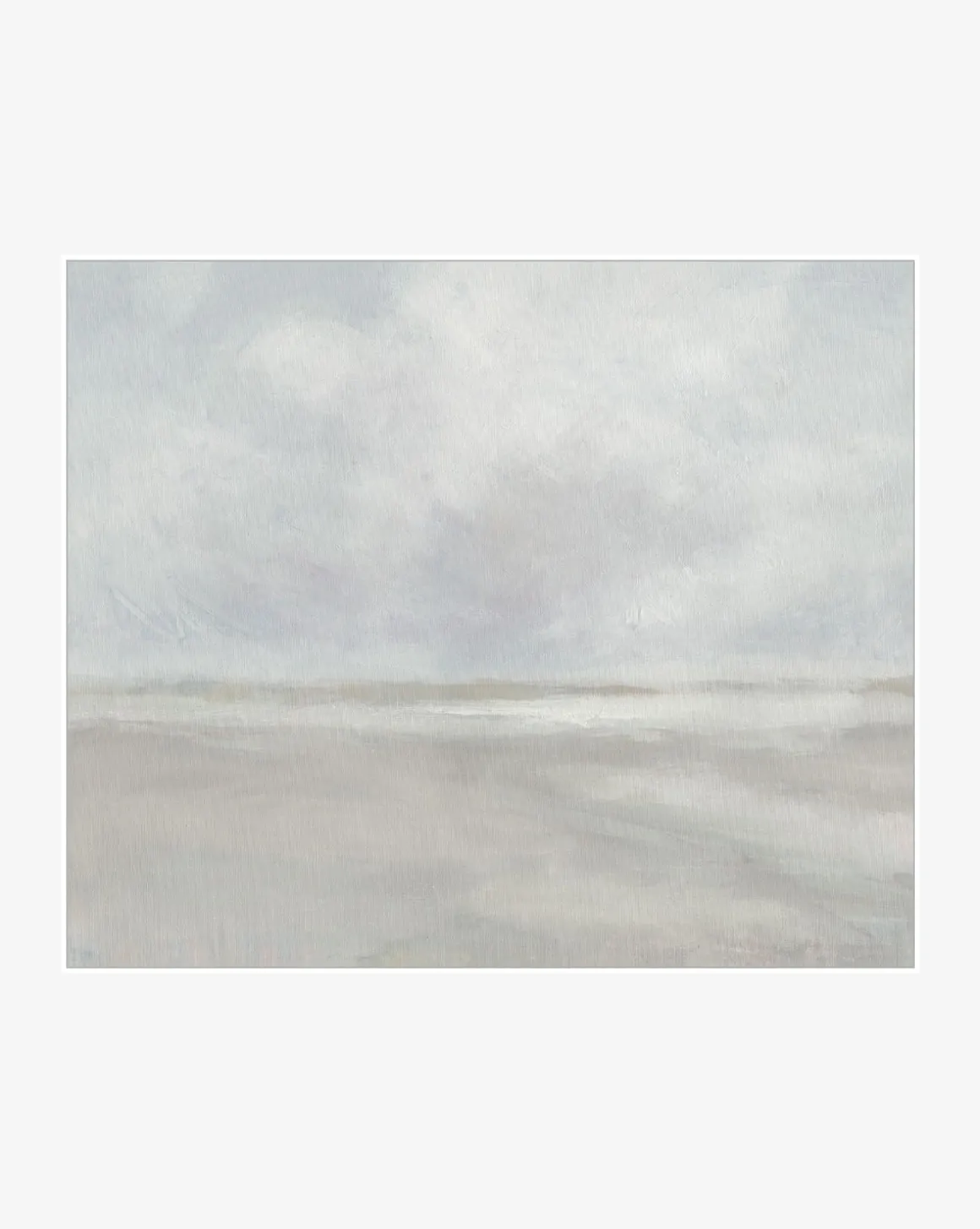 A serene shoreline with thick mist comes to life with each brush stroke in Misty Day. The museum-quality piece is a giclee print on gallery-wrapped canvas within a white wood frame.