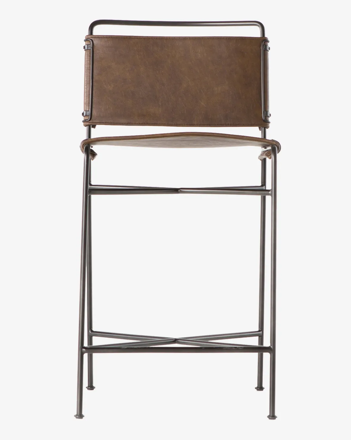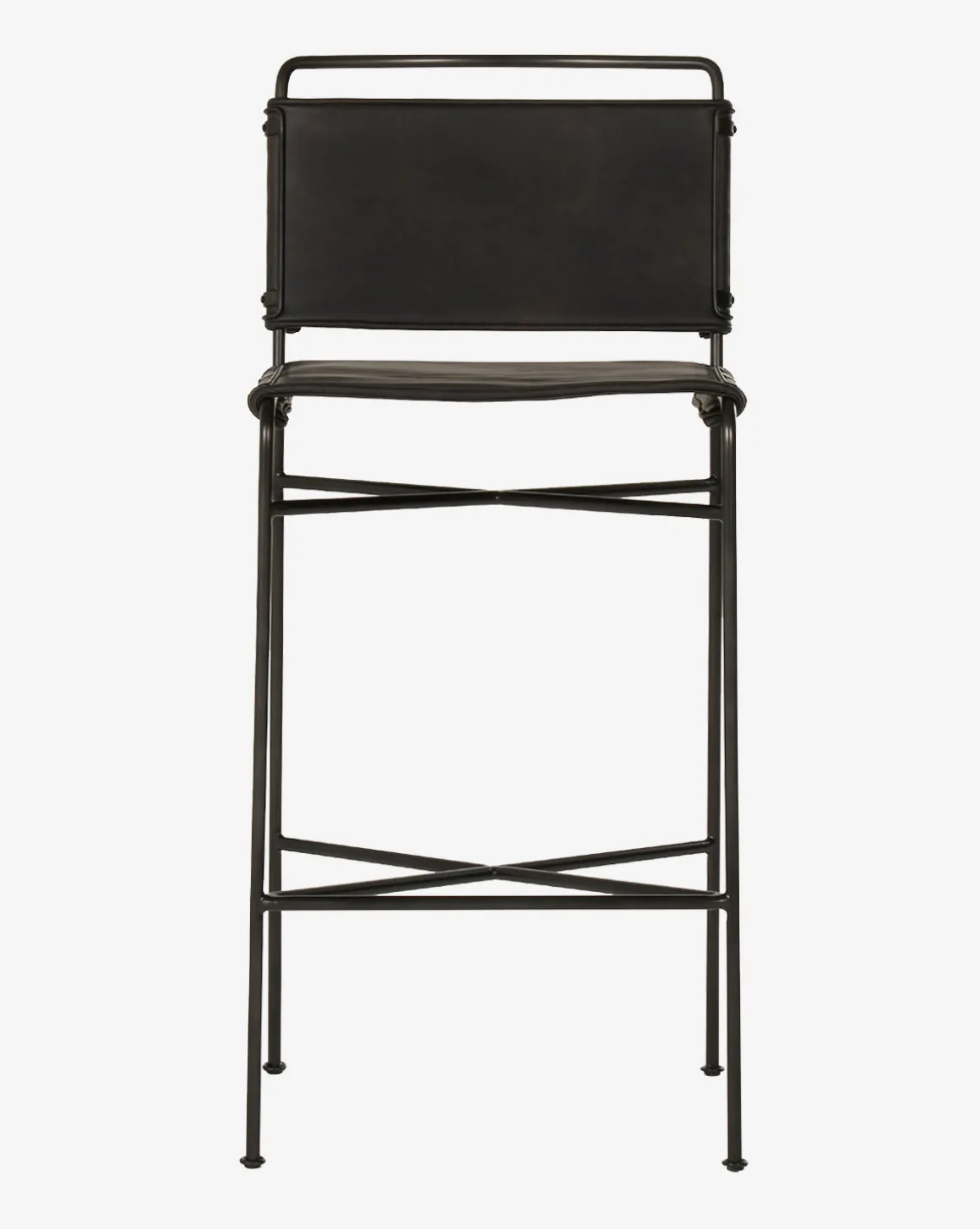 Designed with ample comfort and architectural details like mixed metals and steel tubing, the Moore Stool mixes rustic and industrial styles. Completed with contoured canvas seating that accentuates its blend of styles, the Moore Stool is available in a variety of elegant colorways.