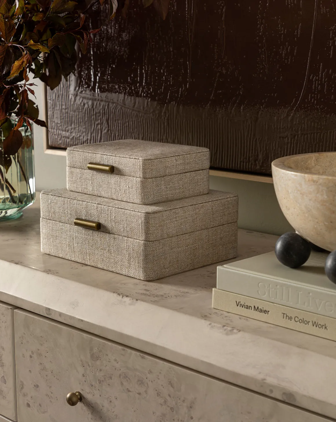 - Off-White Polyester Covering MDF Frame with Iron Rod Hardware