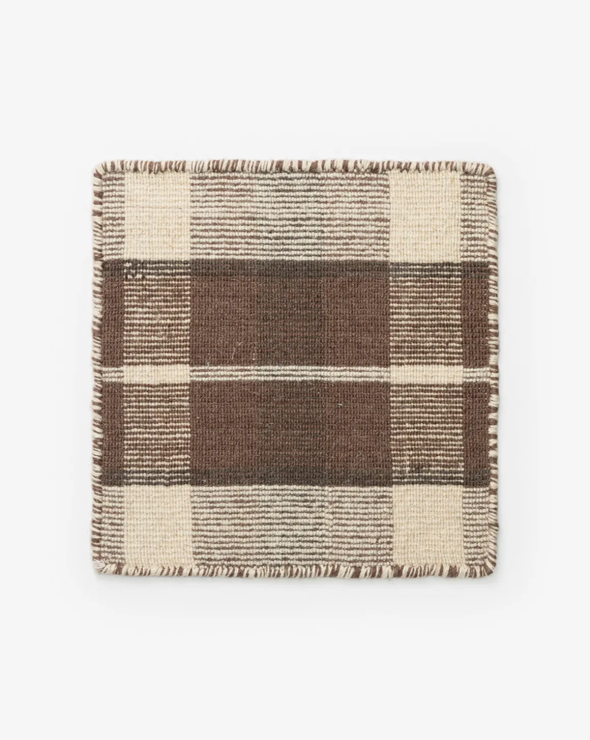 Handwoven from wool in a variety of sizes, the Orton Handwoven Wool Rug embraces contrast in an exaggerated plaid pattern. In rich brown, charcoal, and beige, this textile has an expressive warmth that gives nod to a more traditional pattern. Between its subdued interest and warm neutral palette, the Orton Handwoven Wool Rug grounds your space with ease.