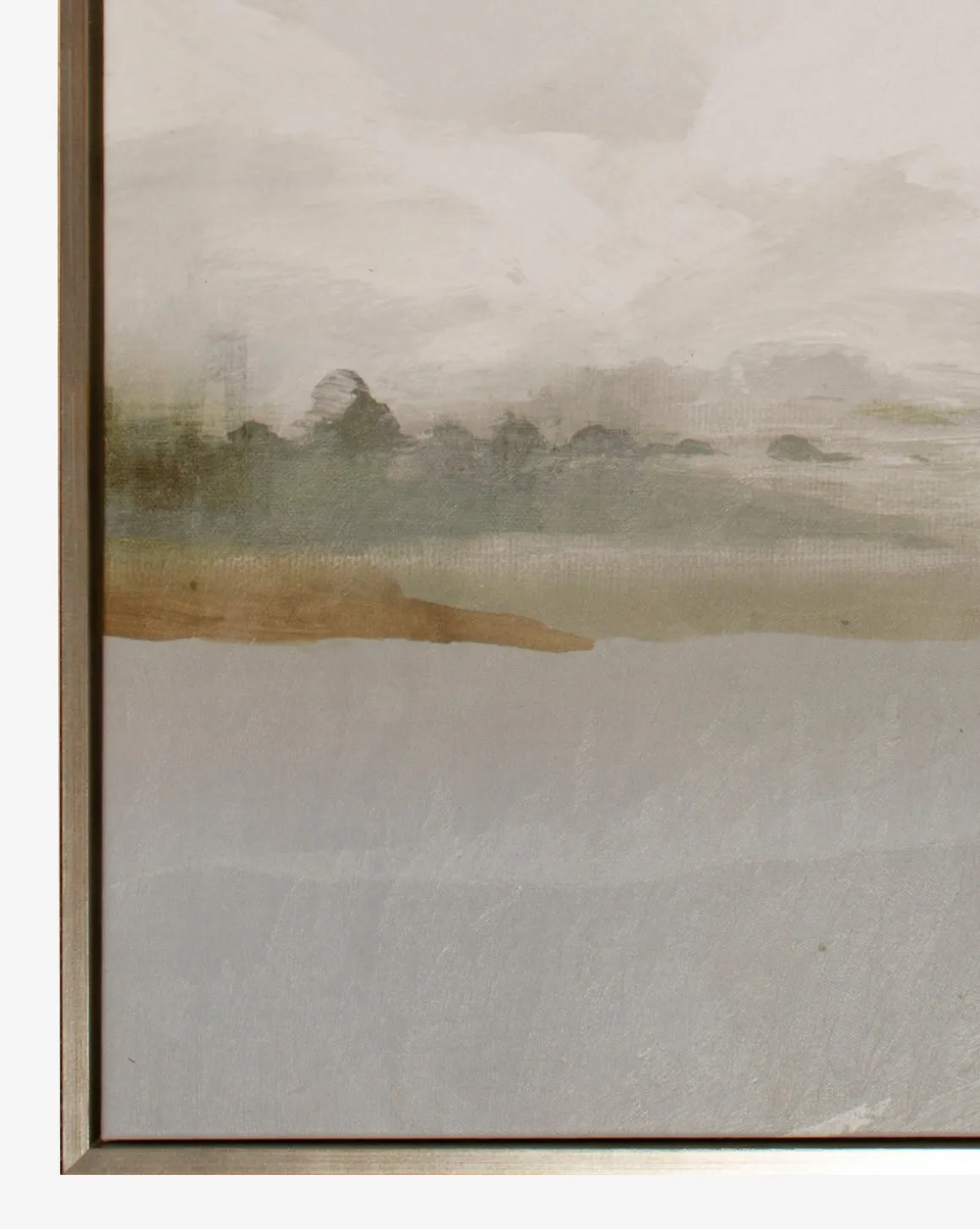 A muted palette and soft, airy brush strokes give Overcast Shoreline I a dimensional, moody feel. This canvas piece is framed in silver wood, giving it an elegant finish that adds depth to your walls.