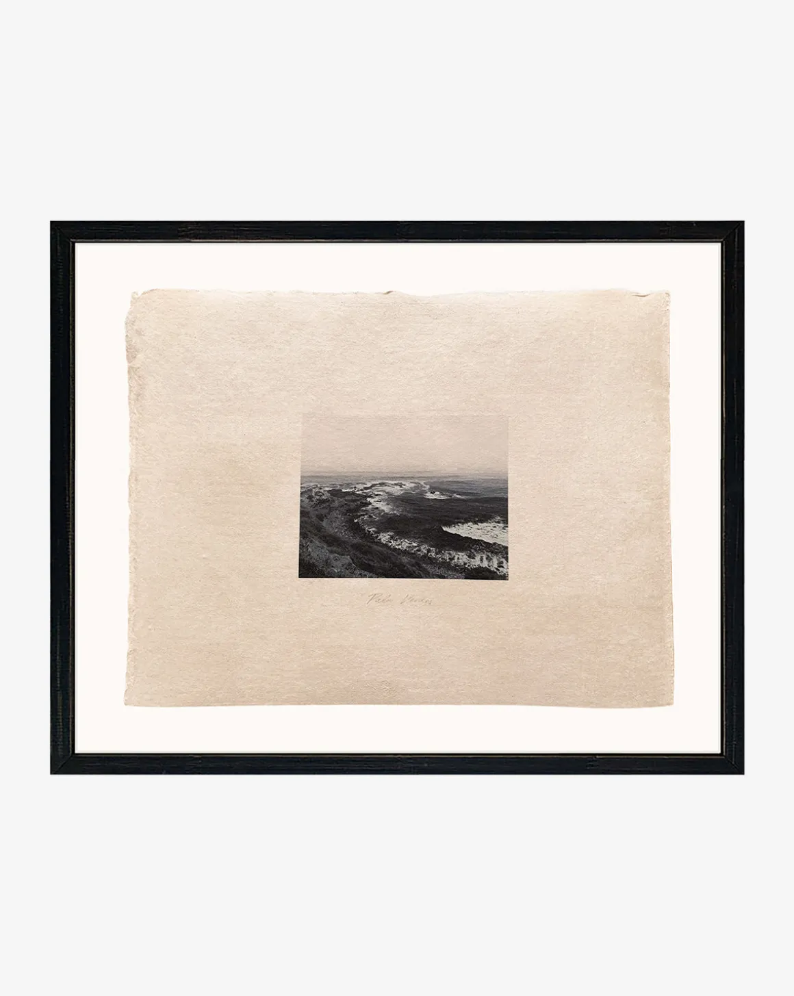 A moving ocean scene, Palos Verdes is a photograph in a rich black and white featuring heavy contrast. Bold expressions of movement anchor the piece, which is printed on Japanese handmade paper and signed by the artist. Palos Verdes is floated in a black oak frame, giving it a museum-quality feel that elevates any space.