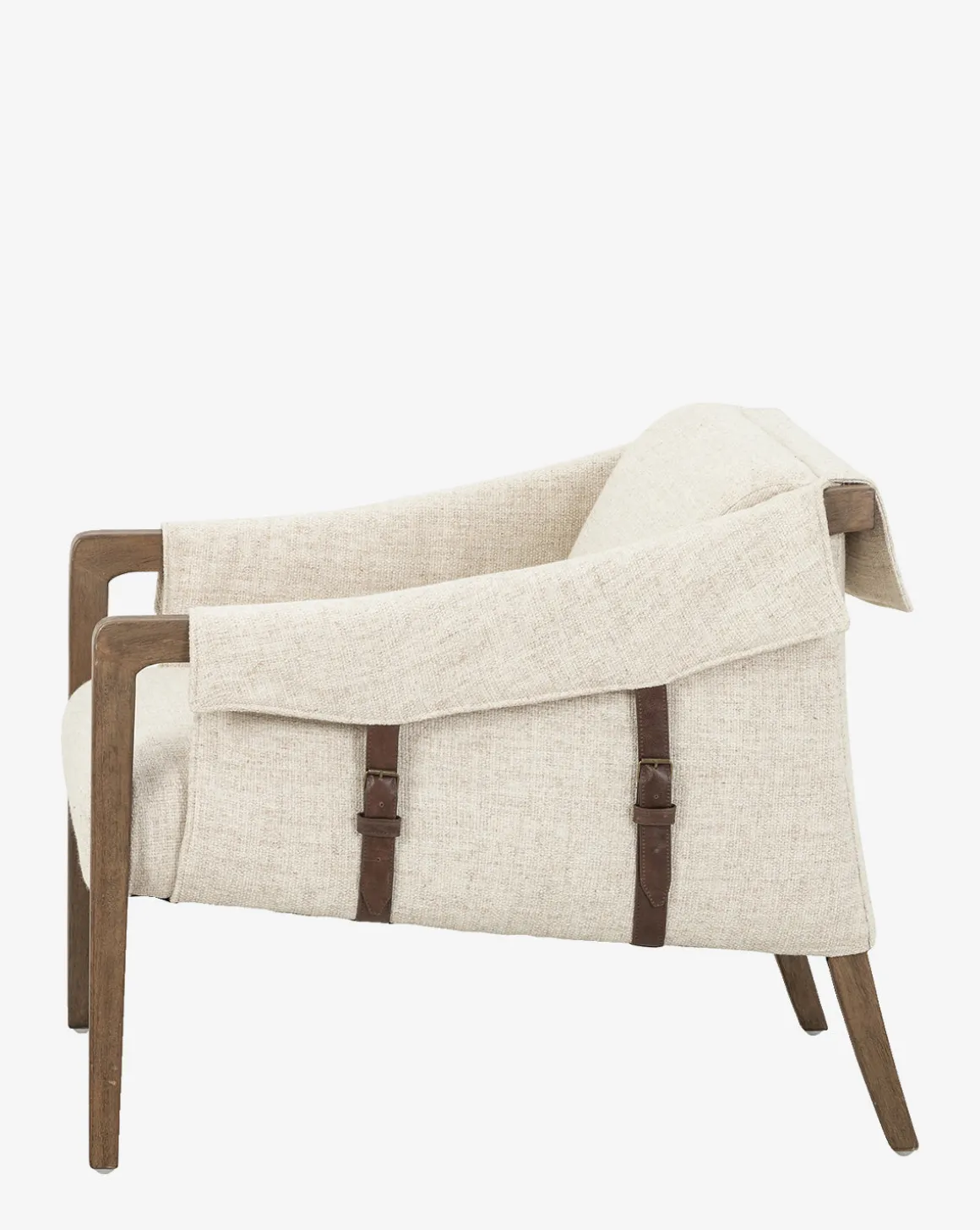 The fabric detailing of the Payson Chair brings an unexpected but welcomed detail to the living room. Its frame of solid ash is upholstered on the seat and back, and its performance fabric extends over the arm in a beautiful drape. Seemingly held together by top-grain leather straps, the Payson Chair has a matured tone that adds unique detail to your seating.