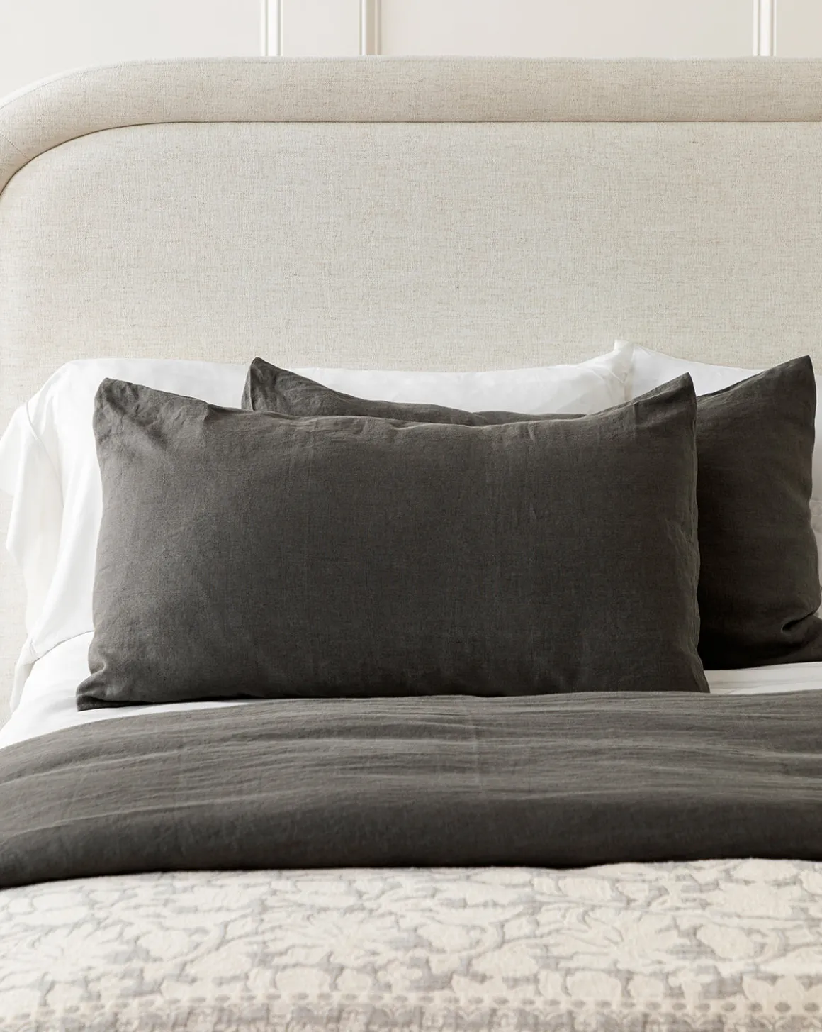 Subtle and soft, the Penelope Gray Linen Shams add a neutral and inviting presence to bedding without overpowering the other components of the room. This elegant gray sham is made from 100% linen.