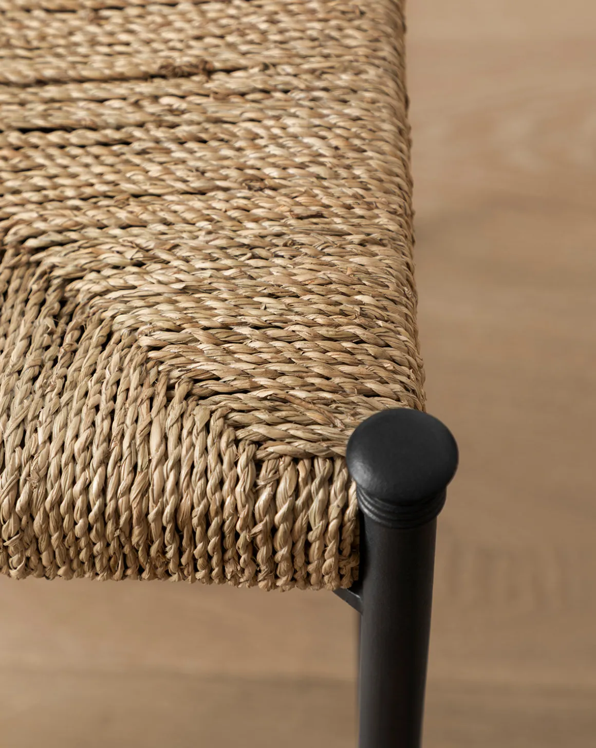 - Powder Coated Steel & Engineered Hardwood Frame, Seagrass Seat & Back