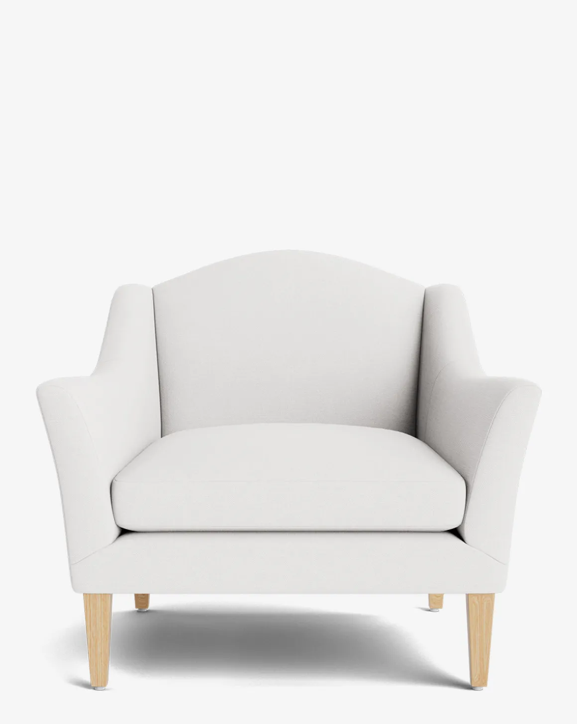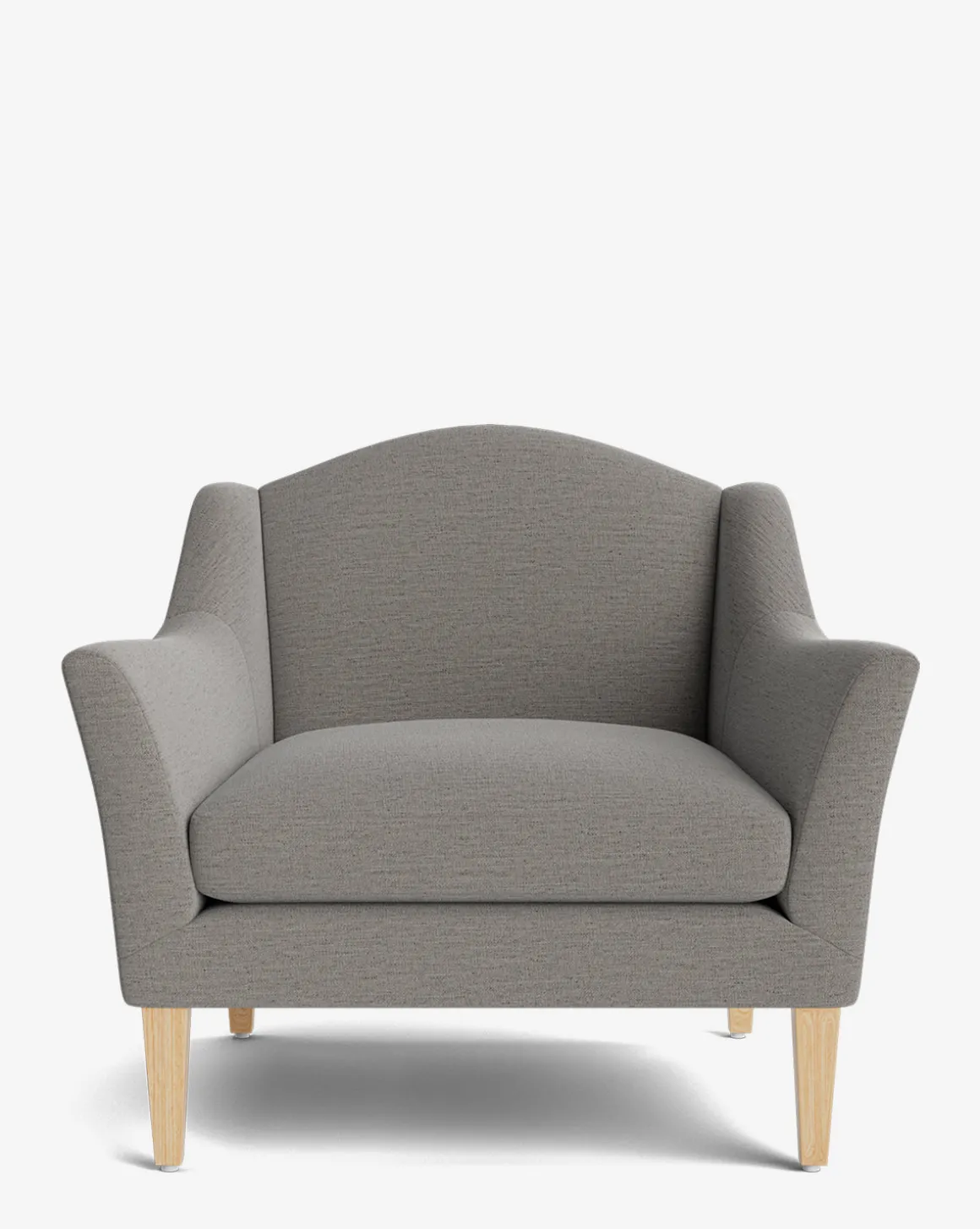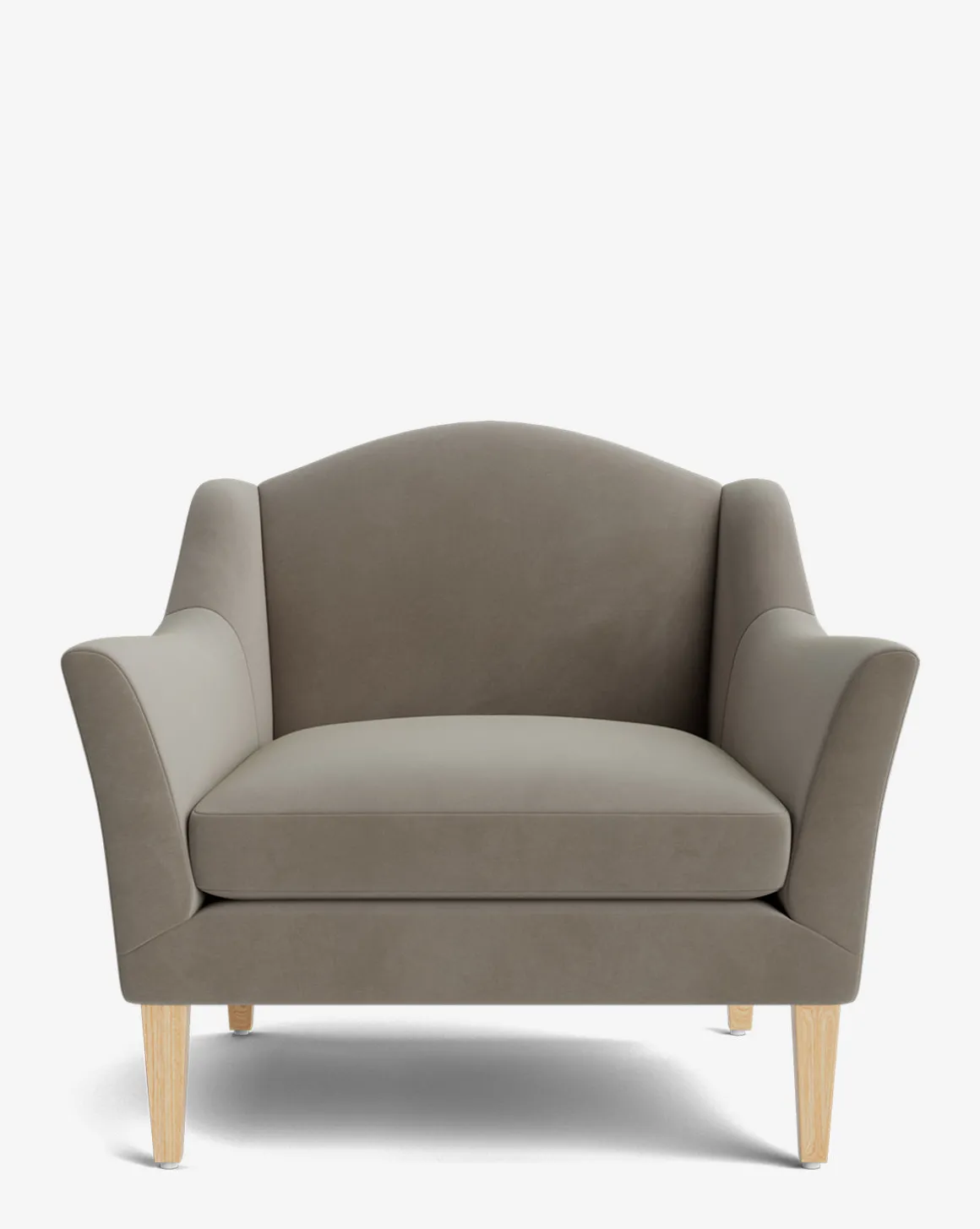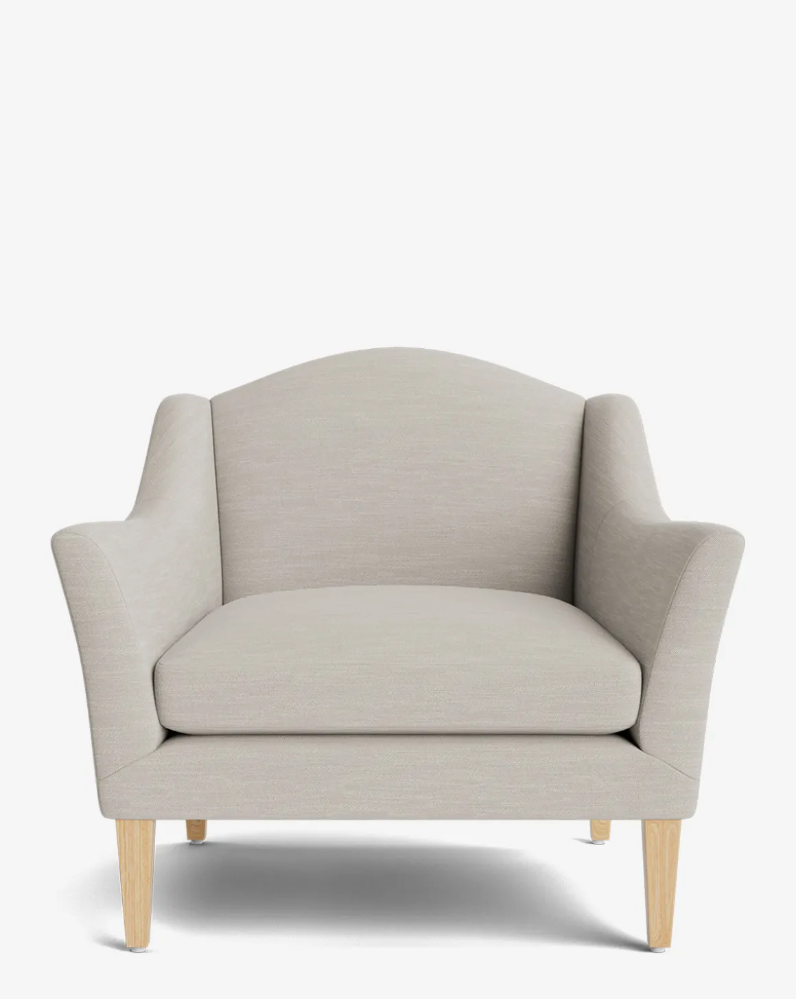 Made to order with a classic silhouette, the Prudence Chair has tapered oak legs that hold its frame with elegantly curved arms and a rounded top. Designed to complement and elevate your home, the chair is available in a selection of high-quality fabrics that highlight its timeless structure.