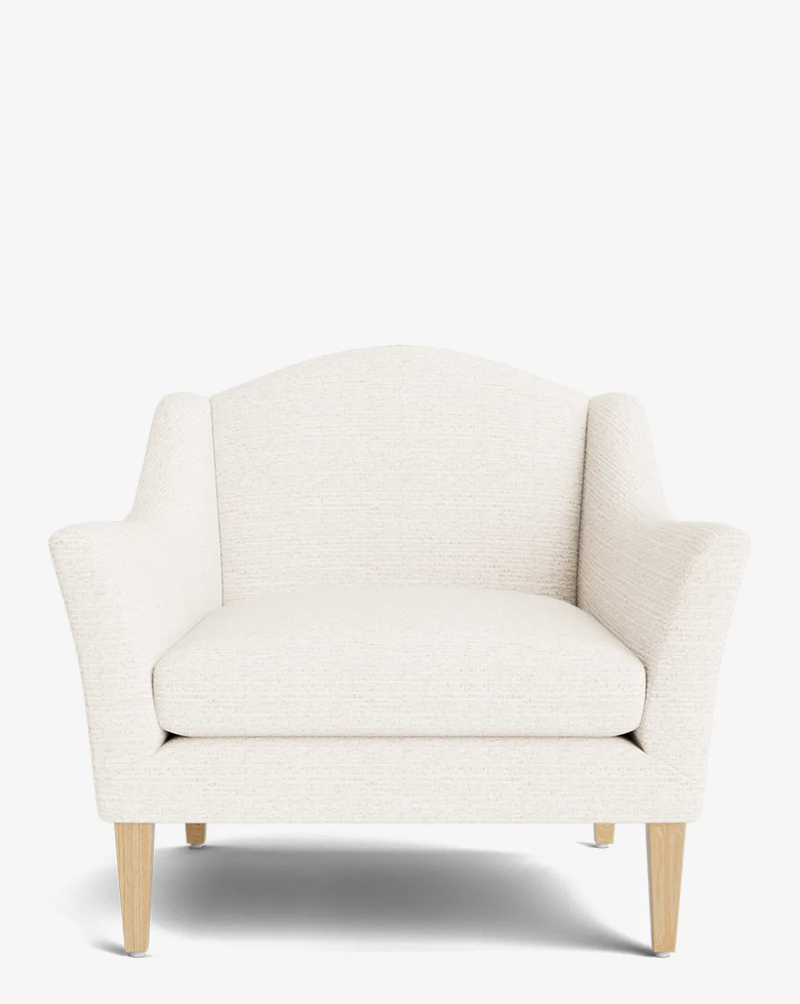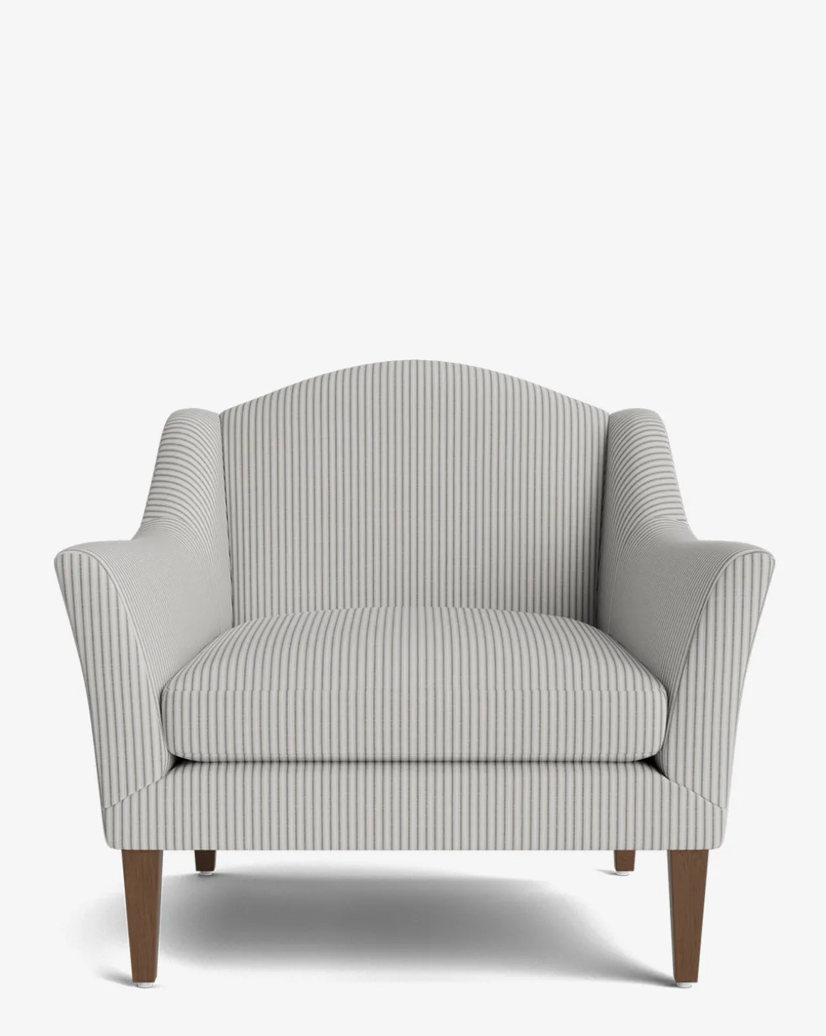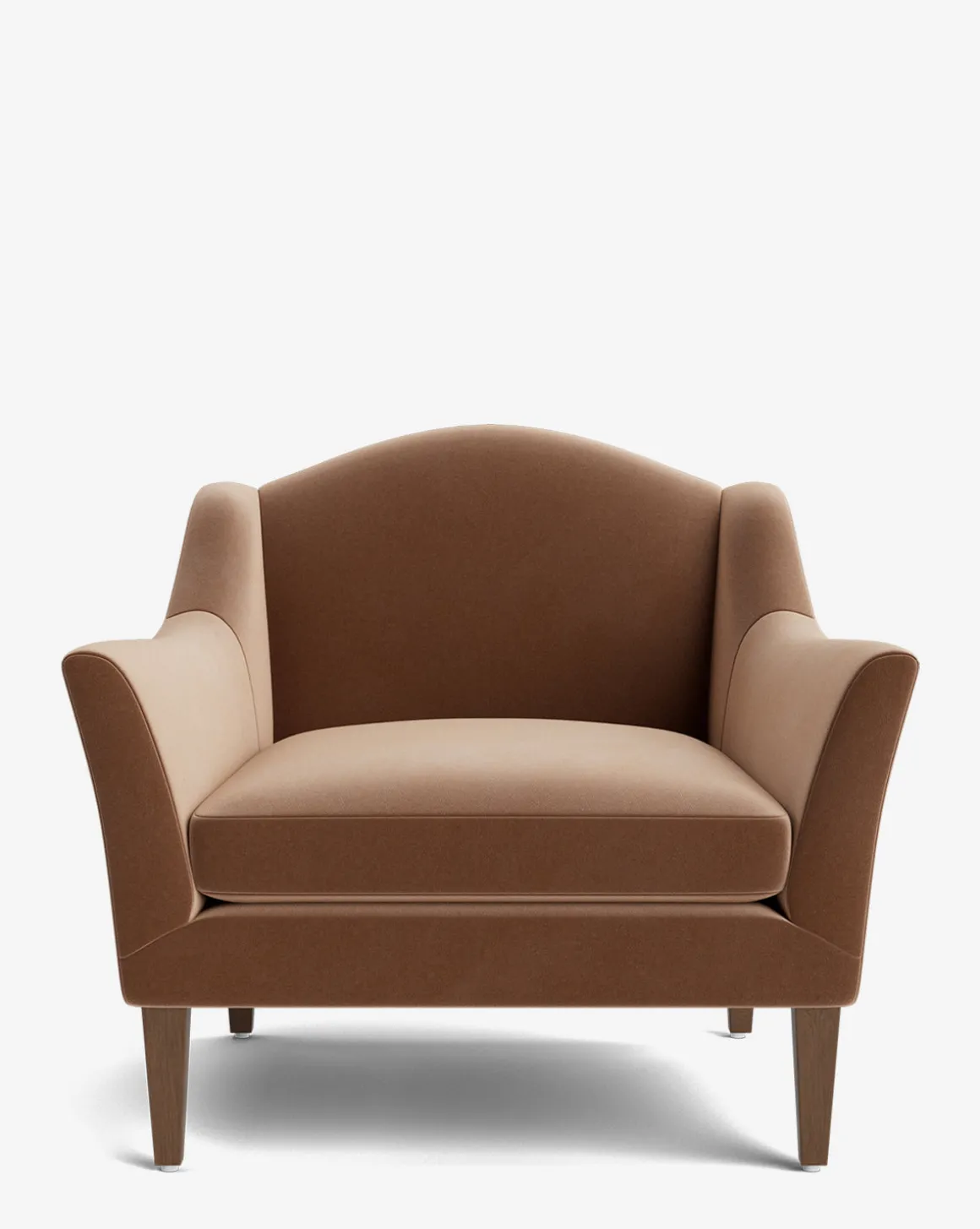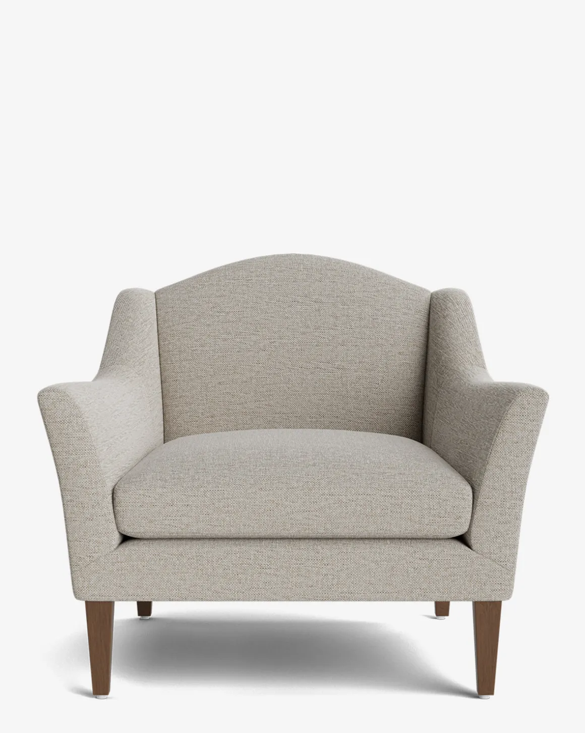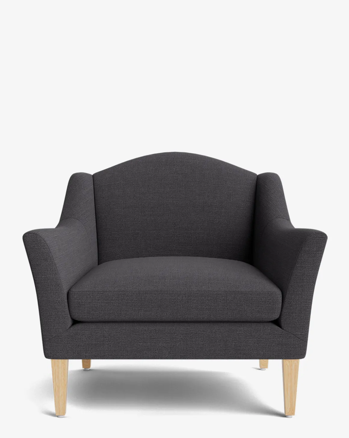 Made to order with a classic silhouette, the Prudence Chair has tapered oak legs that hold its frame with elegantly curved arms and a rounded top. Designed to complement and elevate your home, the chair is available in a selection of high-quality fabrics that highlight its timeless structure.