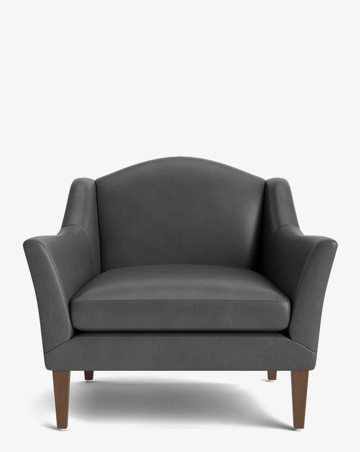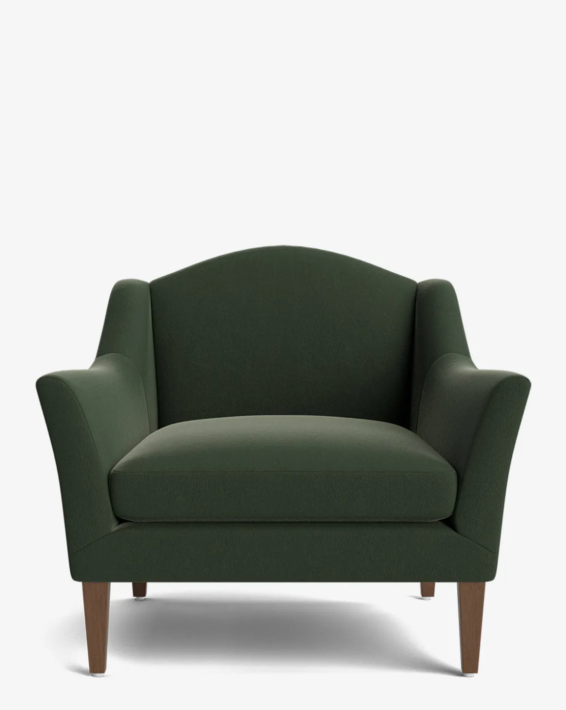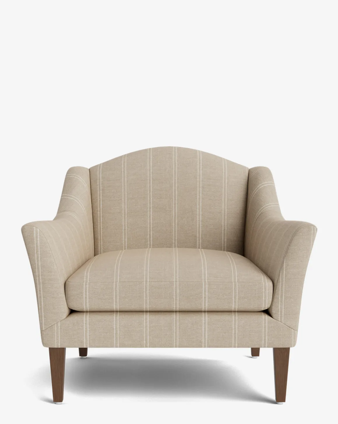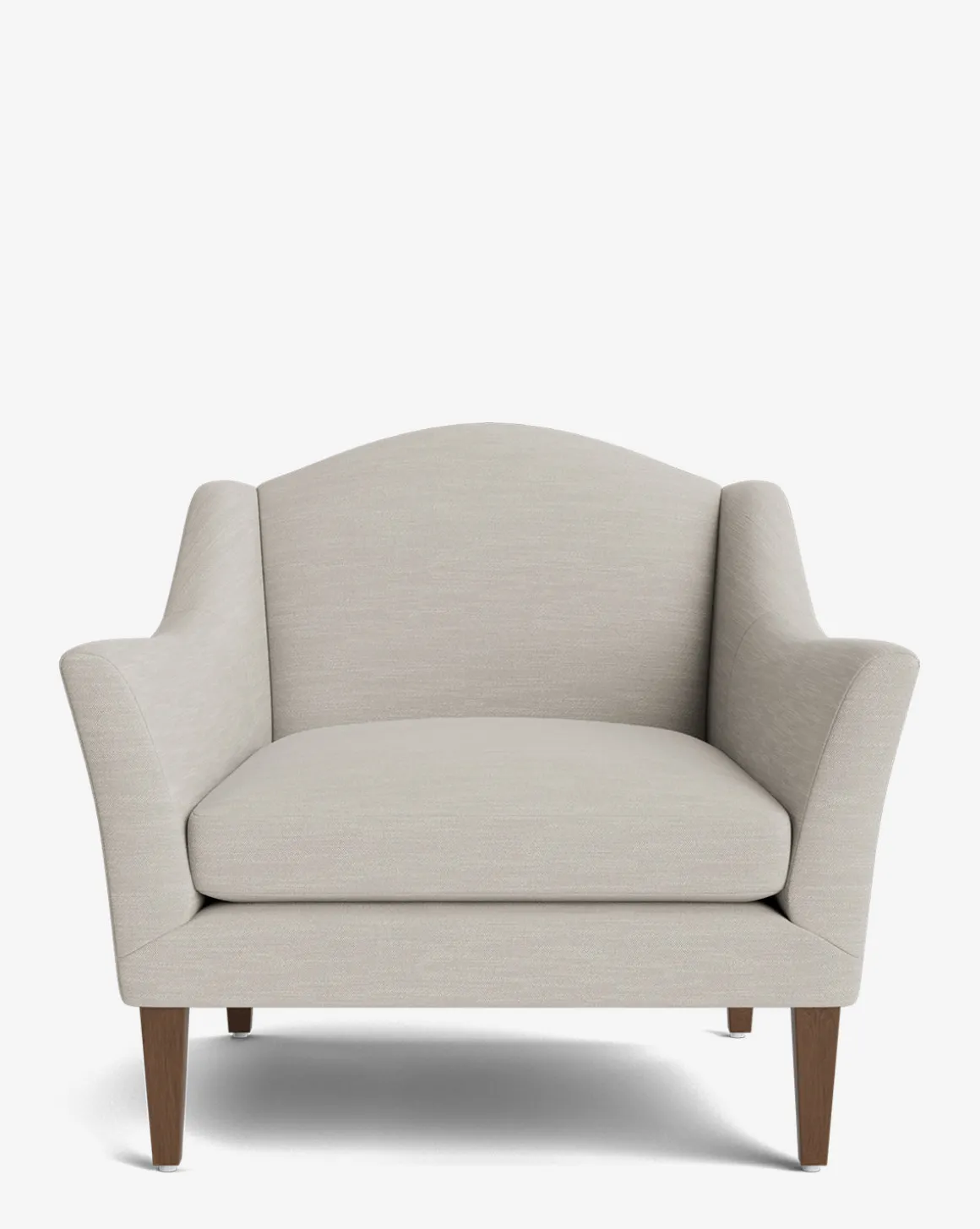 Made to order with a classic silhouette, the Prudence Chair has tapered oak legs that hold its frame with elegantly curved arms and a rounded top. Designed to complement and elevate your home, the chair is available in a selection of high-quality fabrics that highlight its timeless structure.