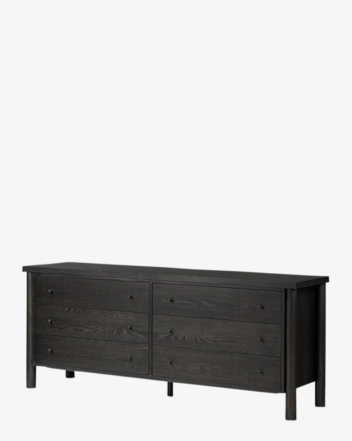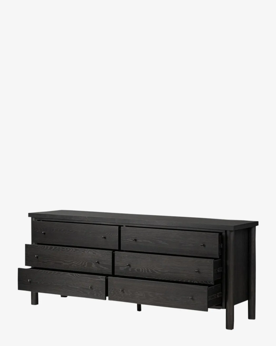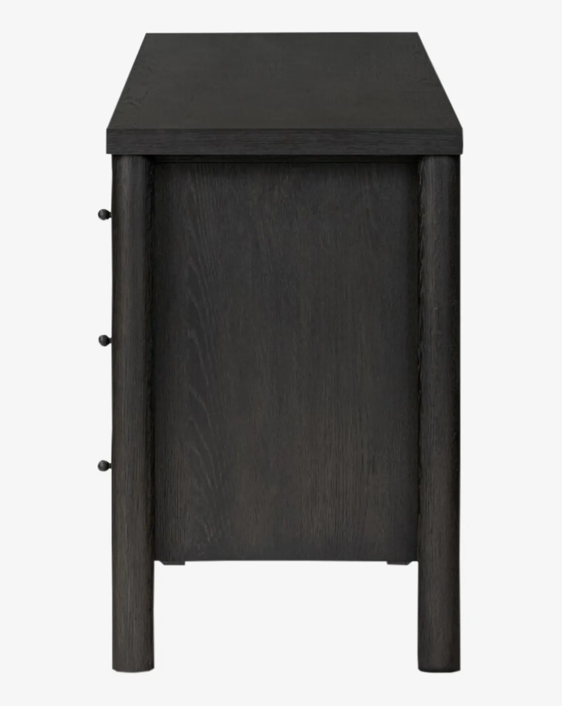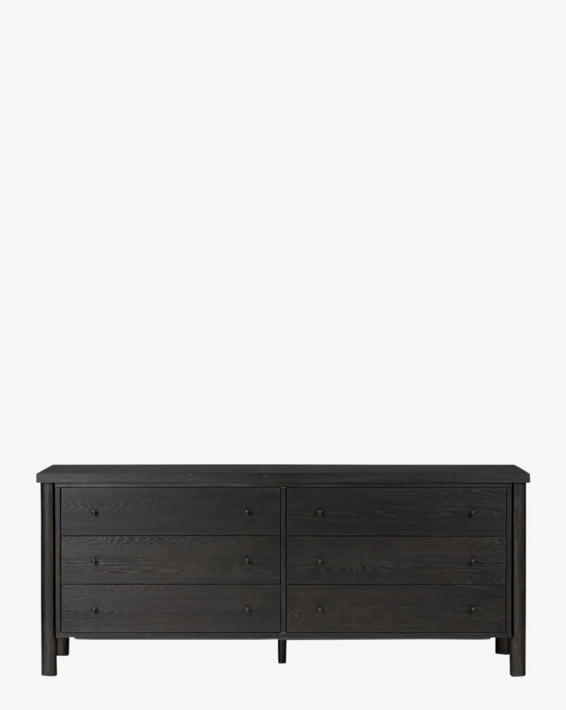 With a stately yet classic form, the Quillon Dresser is striking and elevated. Crafted from oak with an ebony finish, the dresser features dark gunmetal-finished iron hardware for tonal continuity.