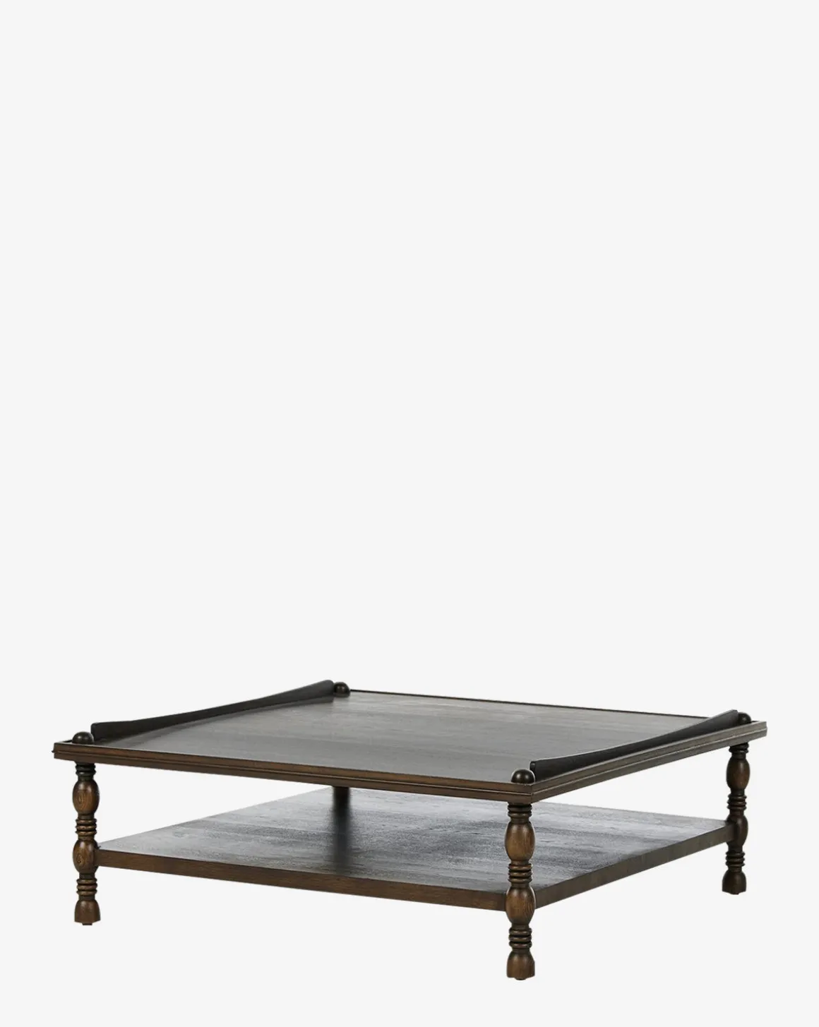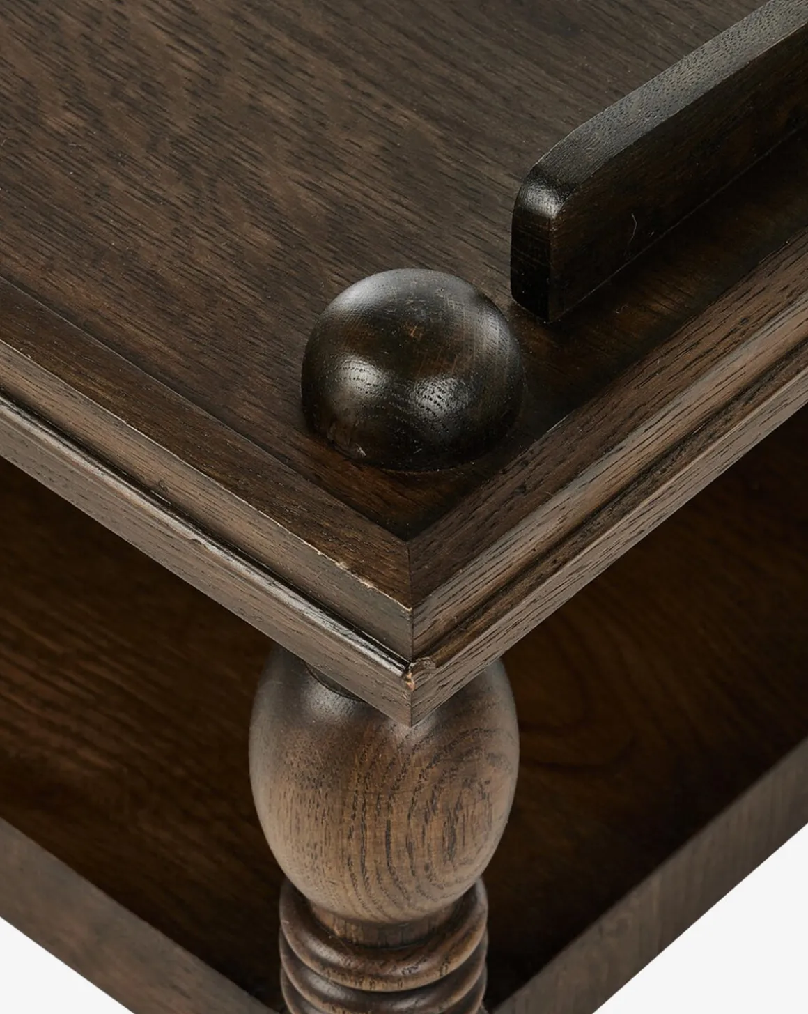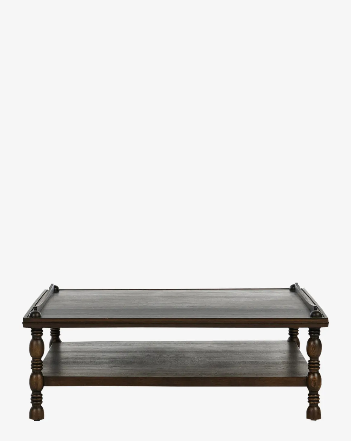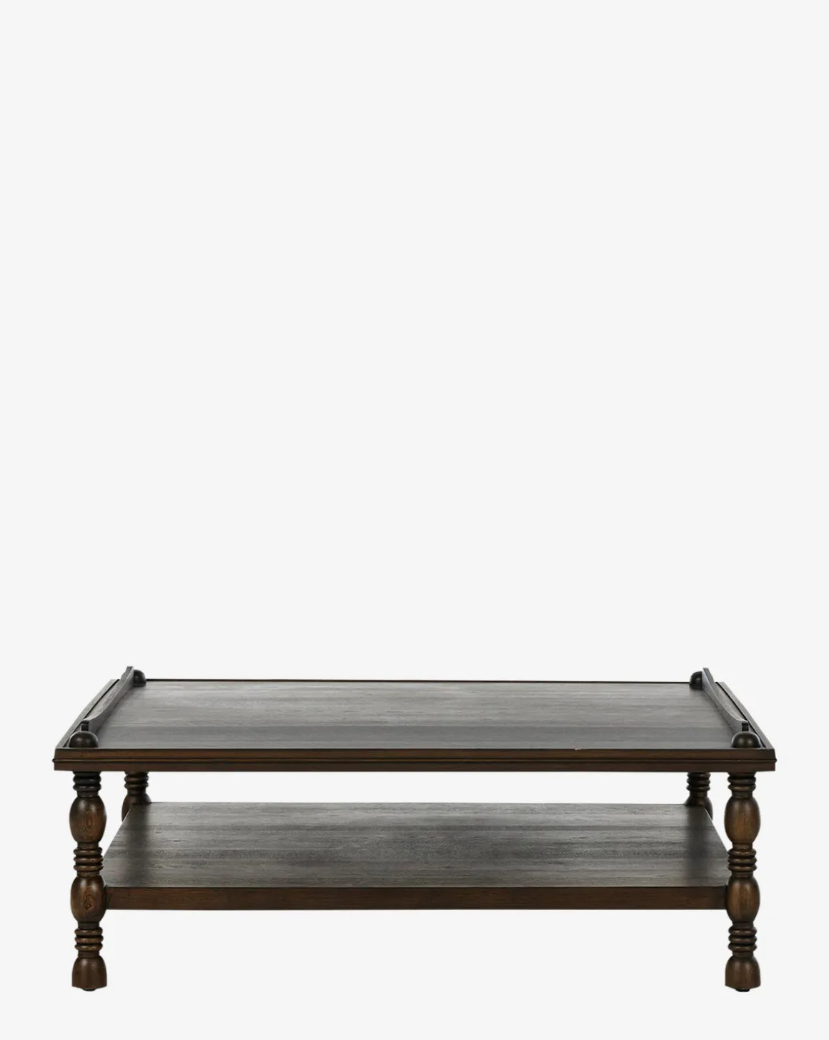 Antique-inspired but built to last, the Rhodes Coffee Table is crafted from durable oak veneer and features lathe-turned, knob styling detailing. Its two-tier design provides storage and display space, elevating the functionality of your living space.
