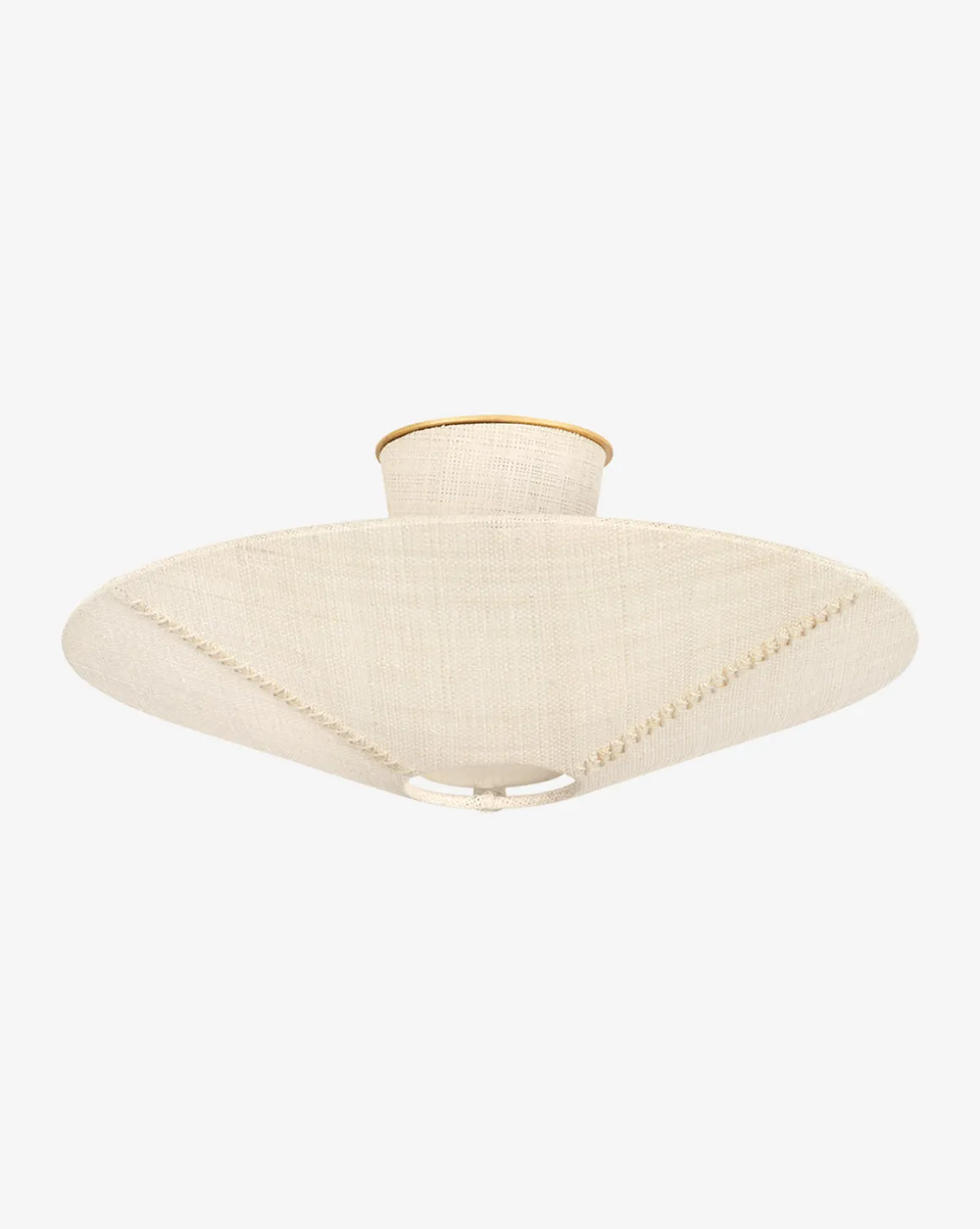 Featuring a woven Saguran fabric shade that softly diffuses light, the Salisbury Mills Flush Mount exudes organic elegance and illuminates any room with an inviting glow. Gold Leaf accents on the canopy and lower base add a refined touch of luxury and enhance its artisanal appeal.