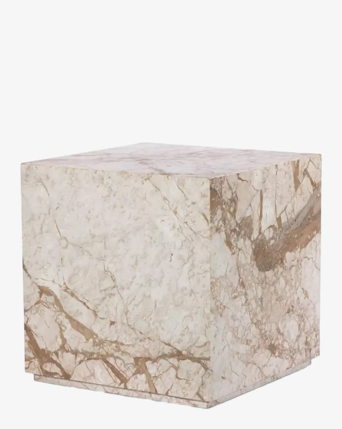 Simple and bold in structure, the Saoirse End Table is visually weighty and full of character. Made from solid taupe marble, the plinth-style end table brings sophistication to the corners of your home.