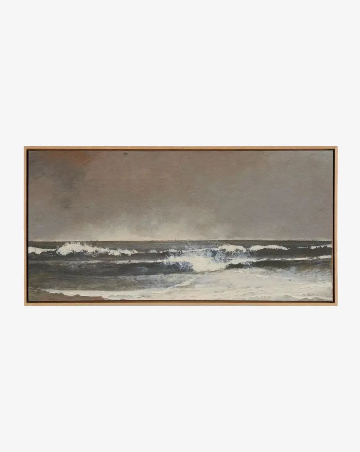 A captivating seascape, Seafoam uses visual texture and a wide composition to tell its story. A vertical grain white oak frame allows for versatile styling in your home, elevating any room it is placed in.
