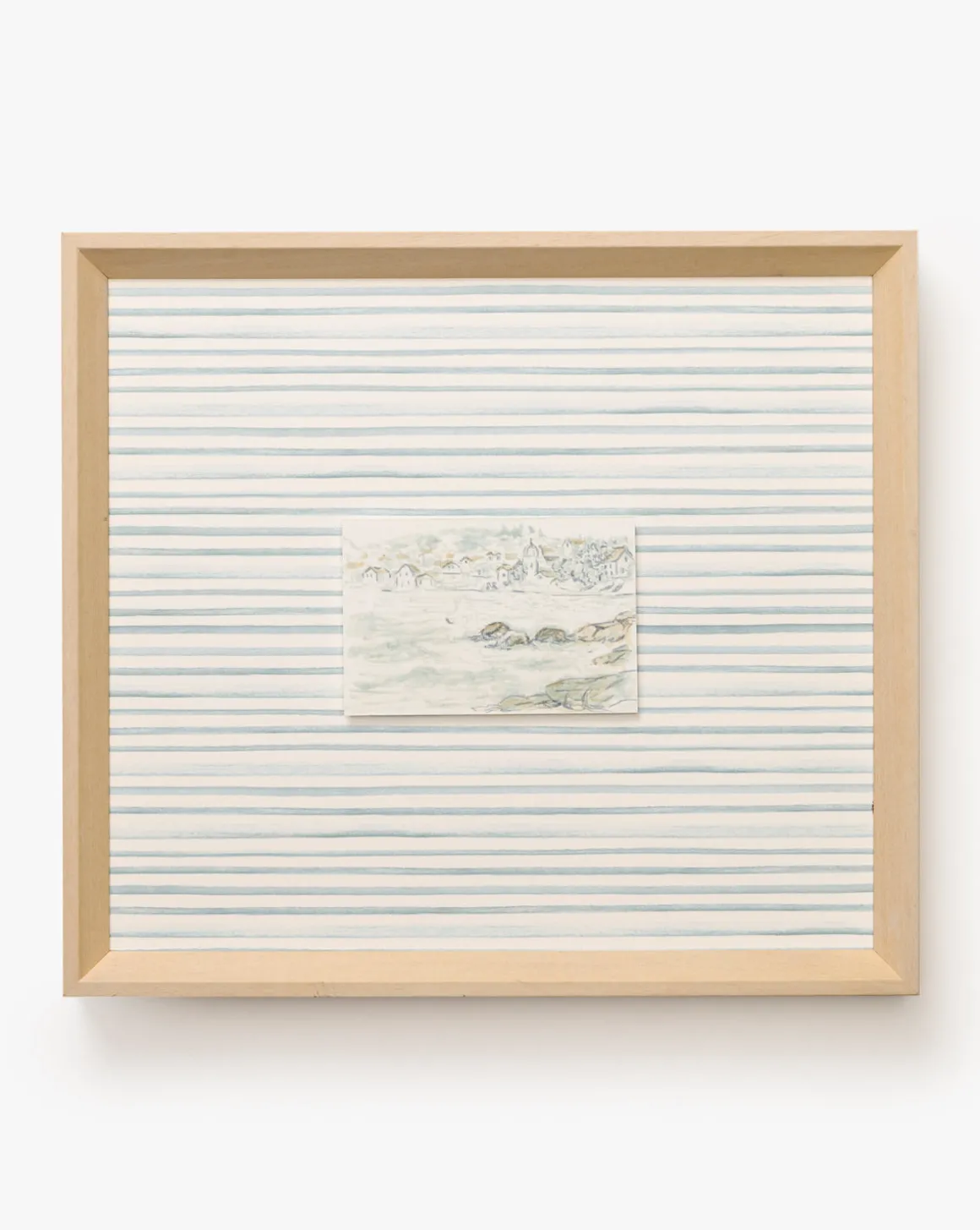 Capturing gentle movement in a calming palette of neutral hues and shades of blue, Seaside Village brings a soothing yet dynamic energy to any playroom or bedroom. The seaside scene and classic stripe background are presented in a frame with a pickled white finish for a touch of refinement. It is a perfect way to incorporate subtle and peaceful coastal charm into your little one’s space.