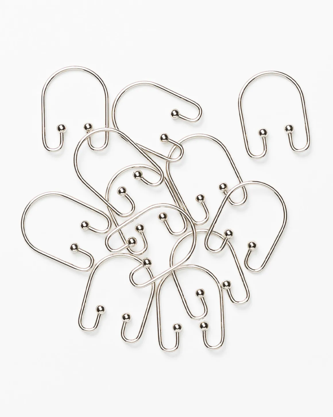 Simple and straightforward, the Shower Curtain Hooks (Set of 12) bring a refined finish to bath designs without taking attention away from the star of the show — the shower curtain.